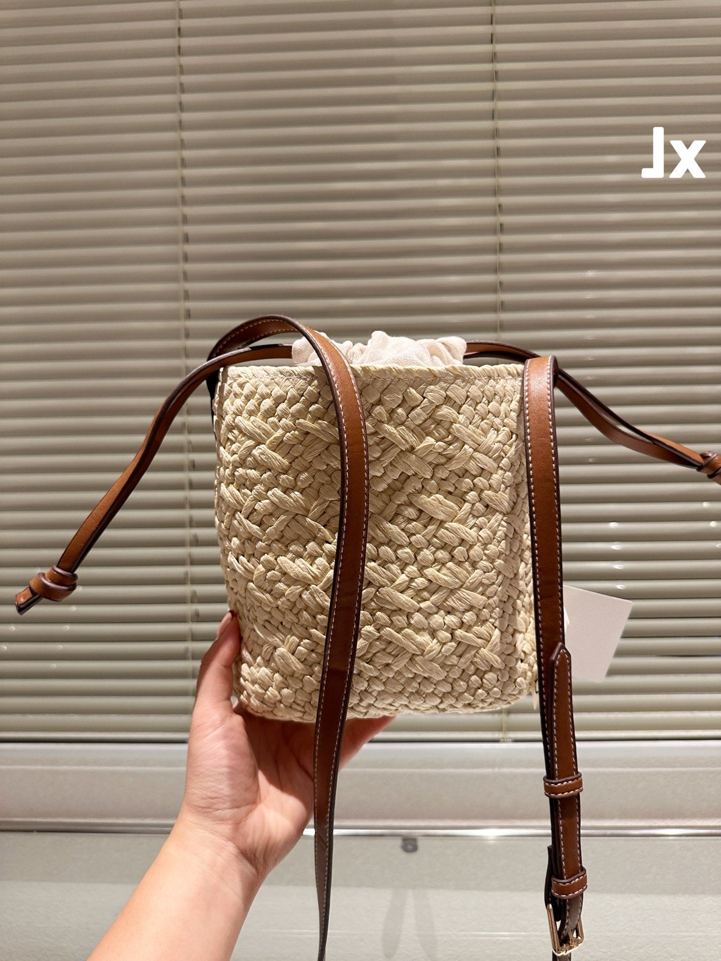 LOE ANAGRAM MINI 18 BUCKET BAG IN NATURAL RAFFIA