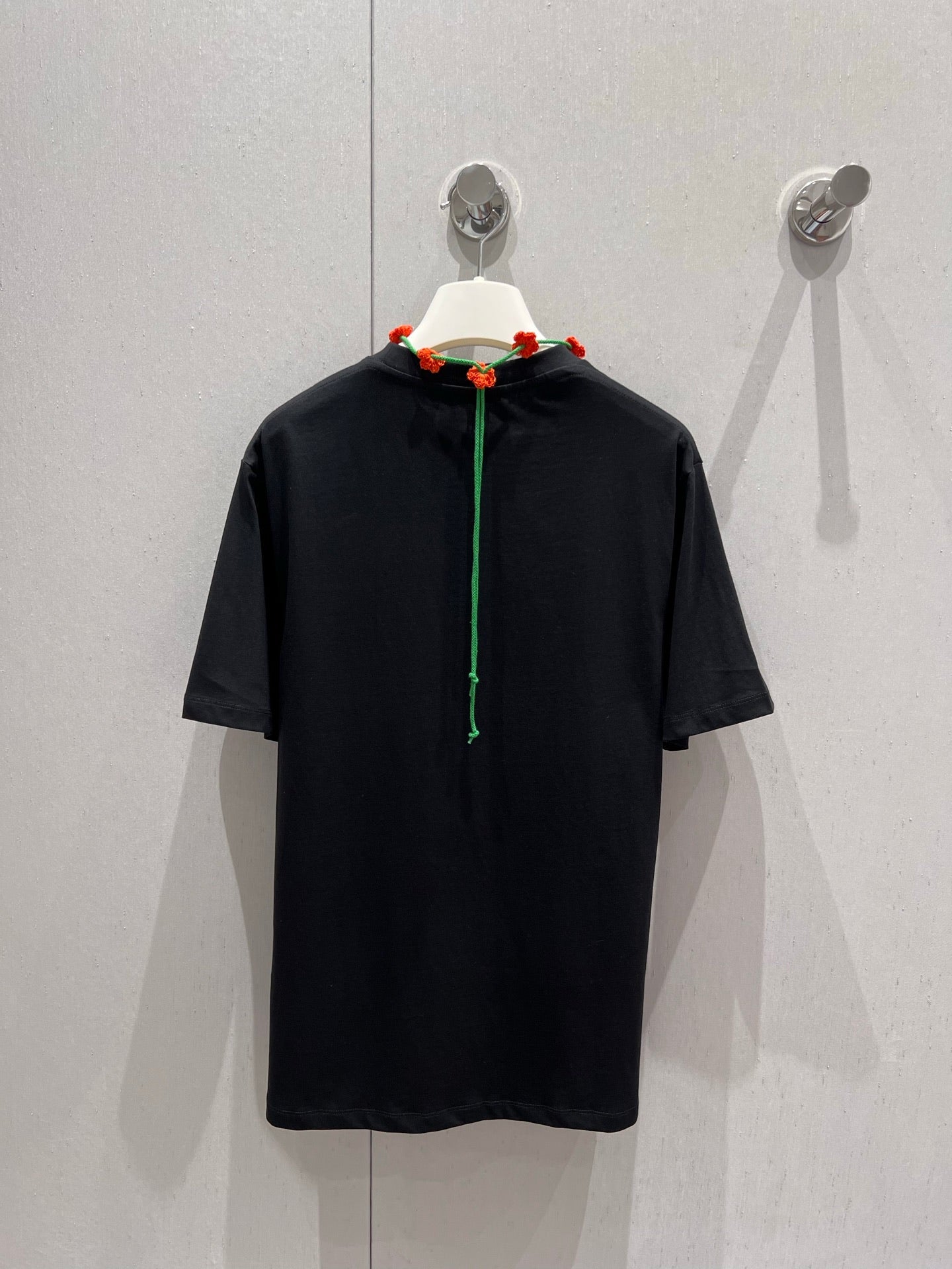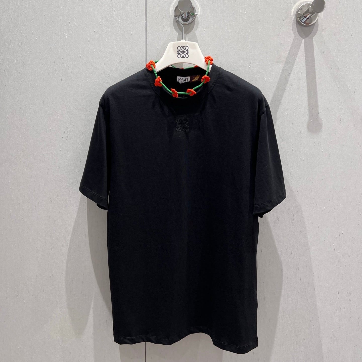 Loewe 25 Floral Neck Halter T-shirt Black Cotton 218253