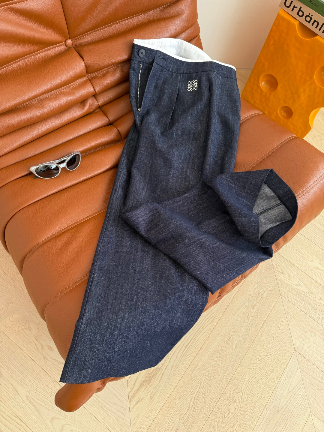 Loewe 25 Logo Embroidered Jeans Dark Blue Cotton