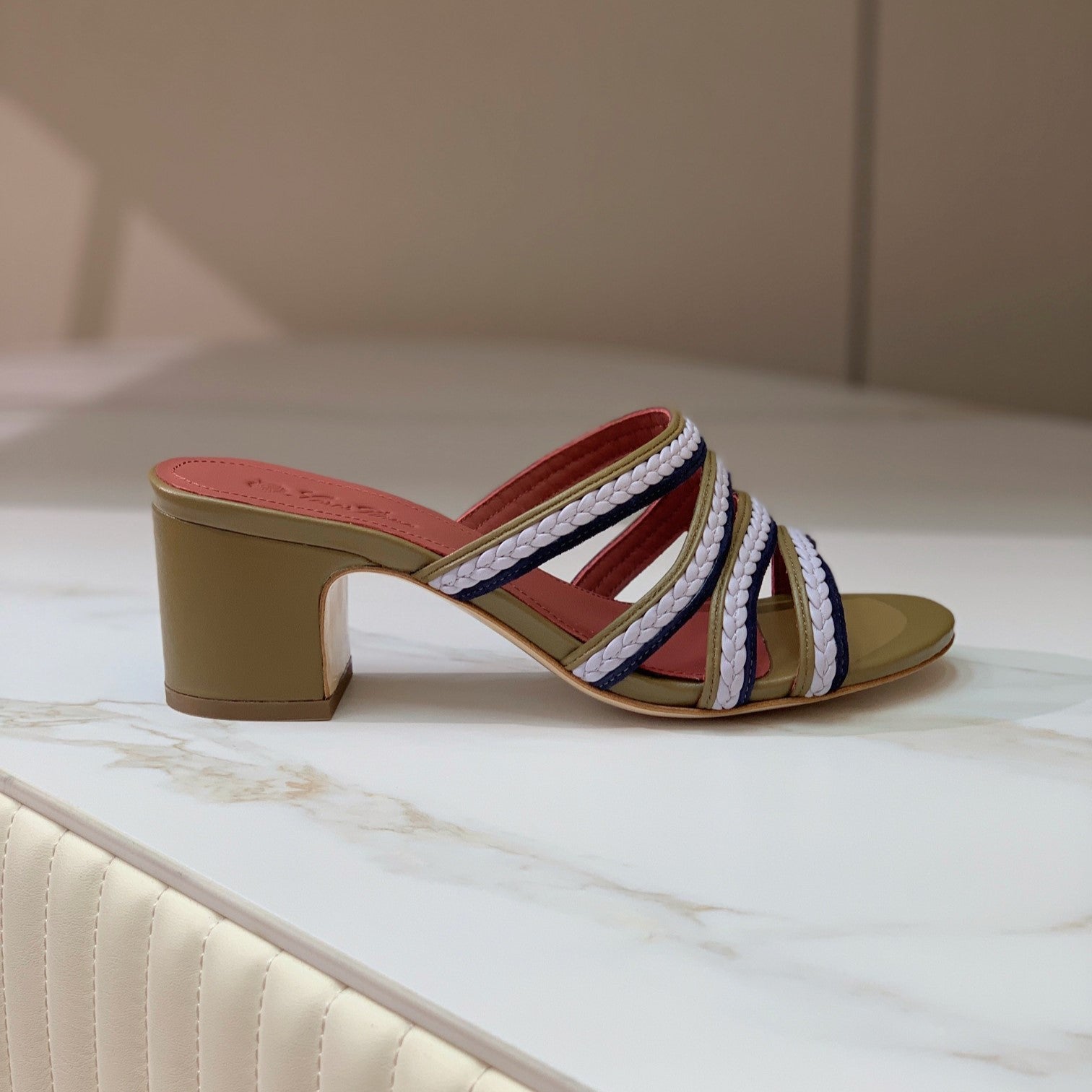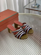 High Hee 60 Sprightly Charms Mule Sandal Olive Purple Navy Calfskin