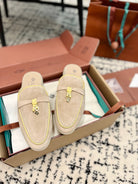 Loro Piana Beige Yellow Suede Charms Walk Flat Mules