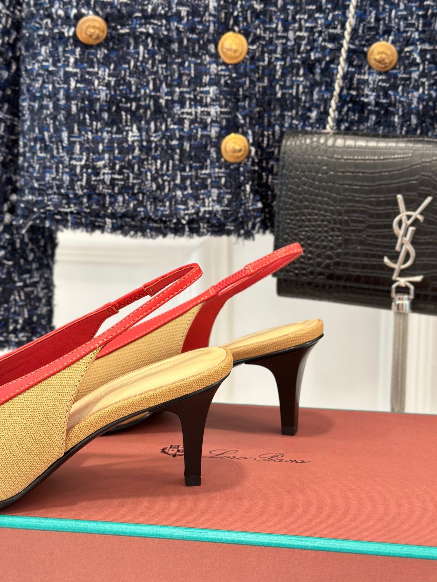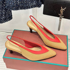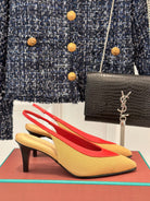 LP Rebecca Slingbacks In Mustard Brown Mix Red Cotton Fabric And Lambskin 989419