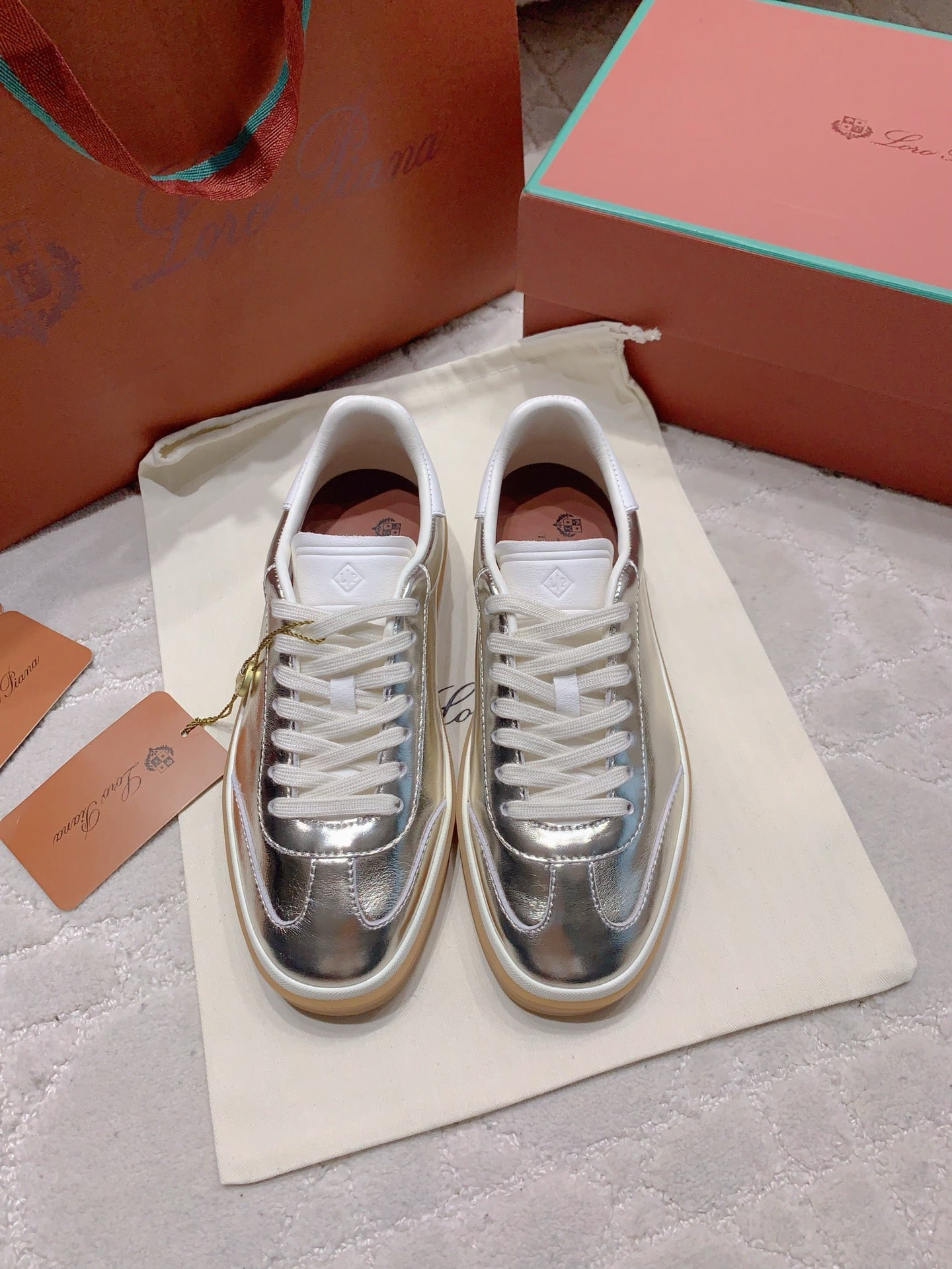 LP sneaker unisex style metallic silver sheepskin mix suede 382666