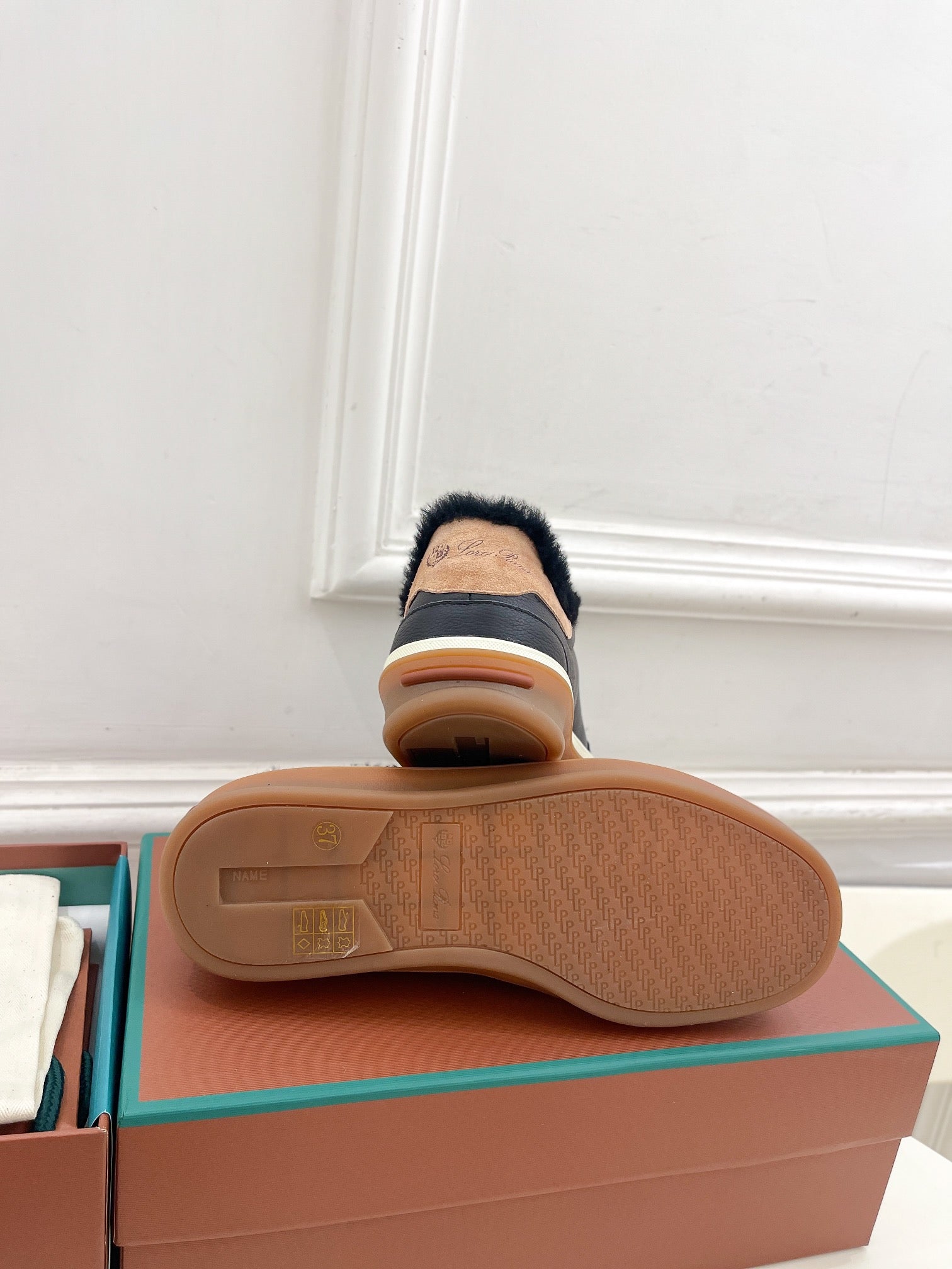 LP Tennis Walk Sneaker In Black Cowhide Lined With Wool Fleece 988262