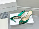 Manolo Buckle Mules 7cm Green Silk 208016