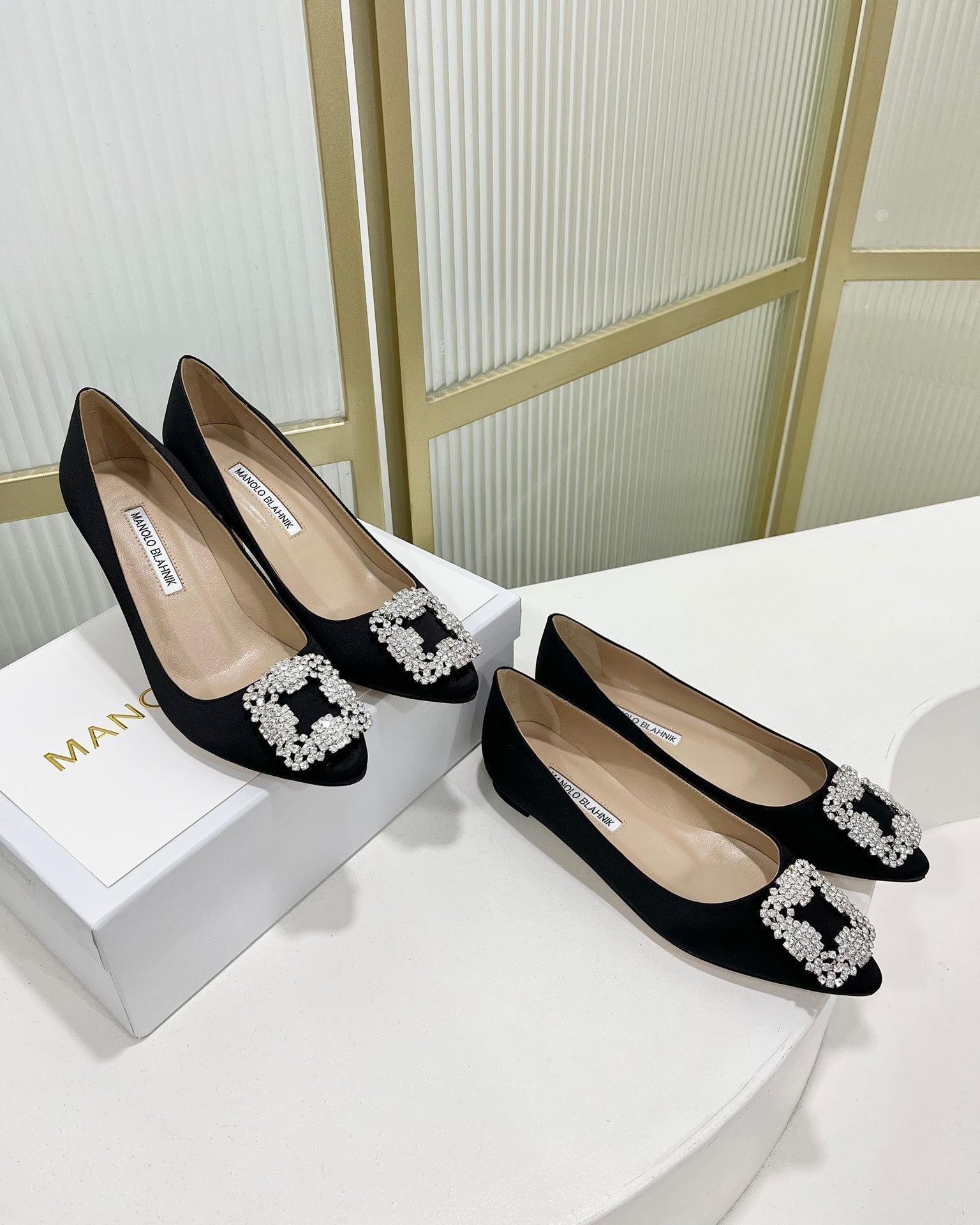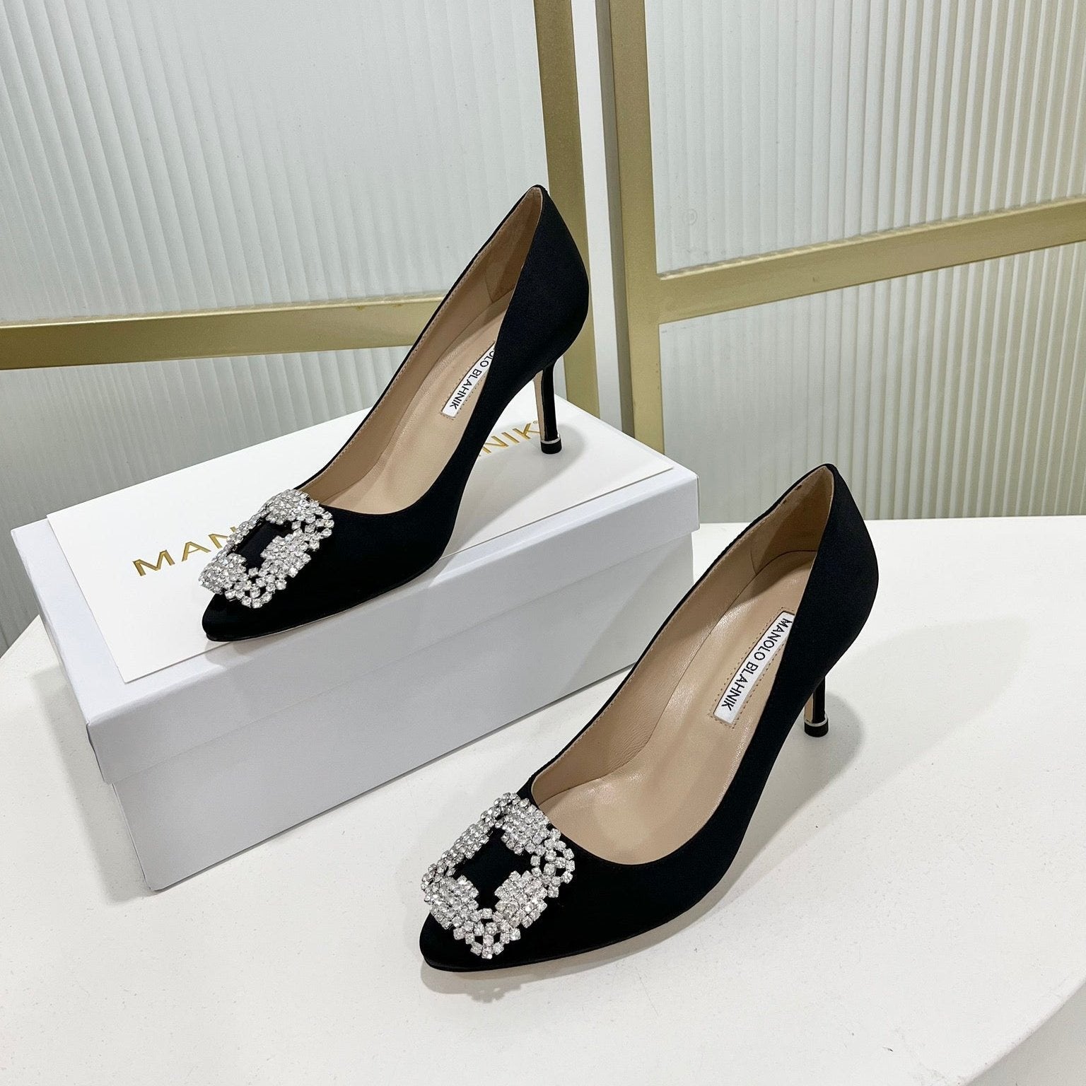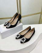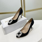Manolo Hangisi Black Satin Jewel Buckle Pump 95