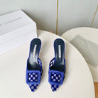Manolo Mules Latest Checkerboard Blue Fabric Leather 528008