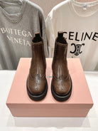 Miu Ankle Boots Coffee Brown Polished Calfskin