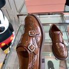 miu double monk brogue brown patent calfskin