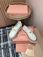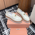 Miu Loafers Coin Shaped Thick Sole White With Brown Border Cowhide