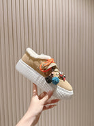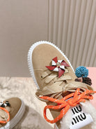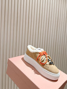 MIU MIU platform sneakers light beige suede wool 461861