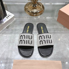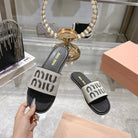 Miu Slippers Black Leather 235320