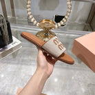 Miu Slippers Brown Leather 235321