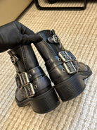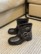 Miu Vintage-Look Black Calfskin Booties
