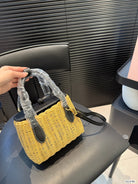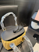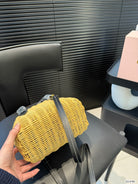BASKET BAG 18 IN BROWN BEIGE WICKER AND BLACK CALFSKIN TRIM