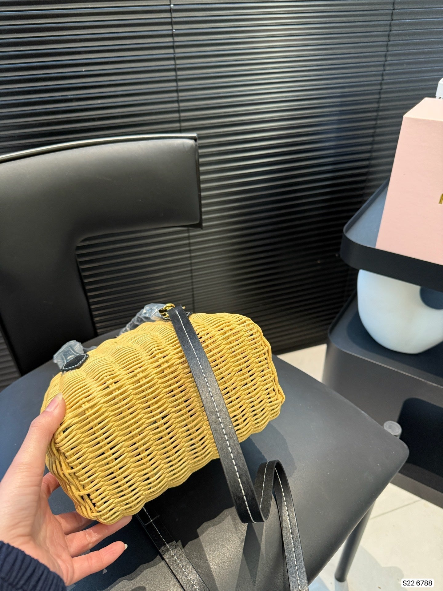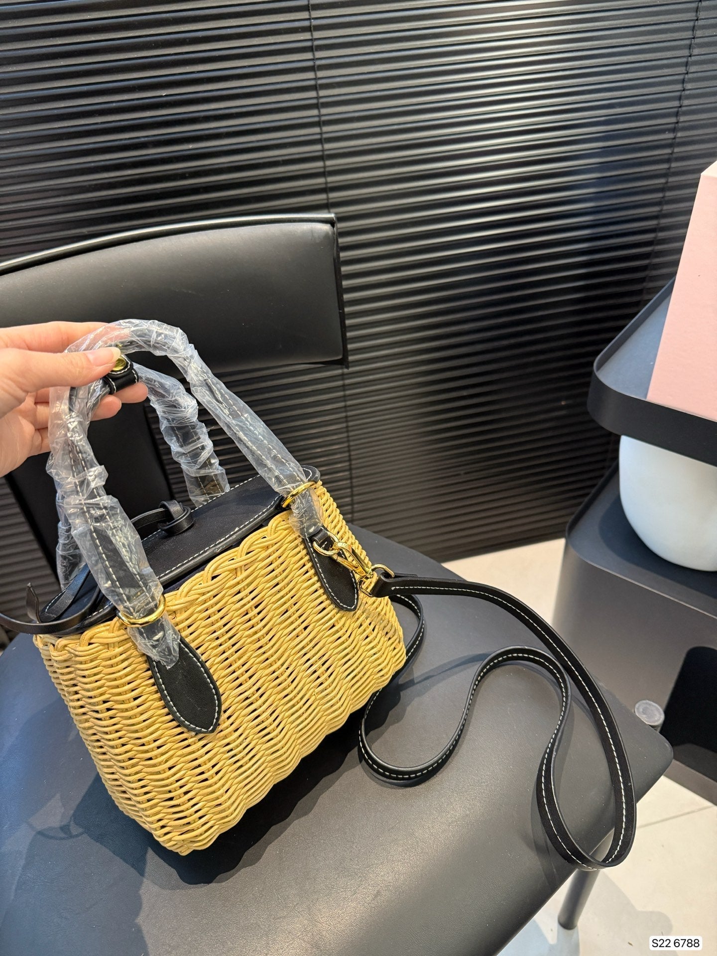 • Material: Calfskin and wicker