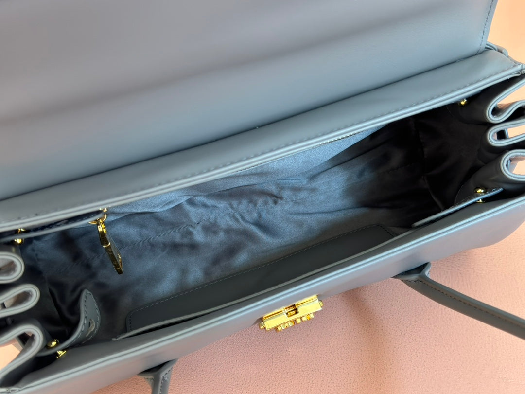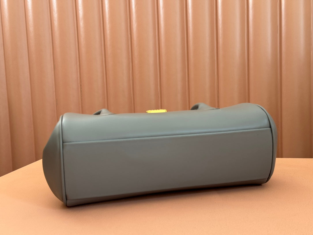 BEAU TOP HANDLE BAG 28 IN LAVA GREY GLOSSY CALFSKIN GOLD HARDWARE
