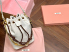 DRAWSTRING BUCKET BAG 21 IN WHITE CANVAS GOLD HARDWARE