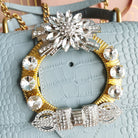 LADY 20 HANDBAG IN CROCODILE PATTERN BLUE MINT CALFSKIN