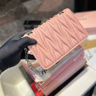 MATELASSÉ CRYSTAL CHAIN BAG 21 IN BABY PINK LAMBSKIN