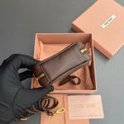 MICRO BAG KEYCHAIN 11 IN ROCK BROWN CALFSKIN EMBOSSED LOGO