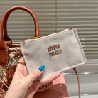 WOVEN HOLLOW BAG 18 IN BEIGE RATTAN AND BROWN CALFSKIN TRIM