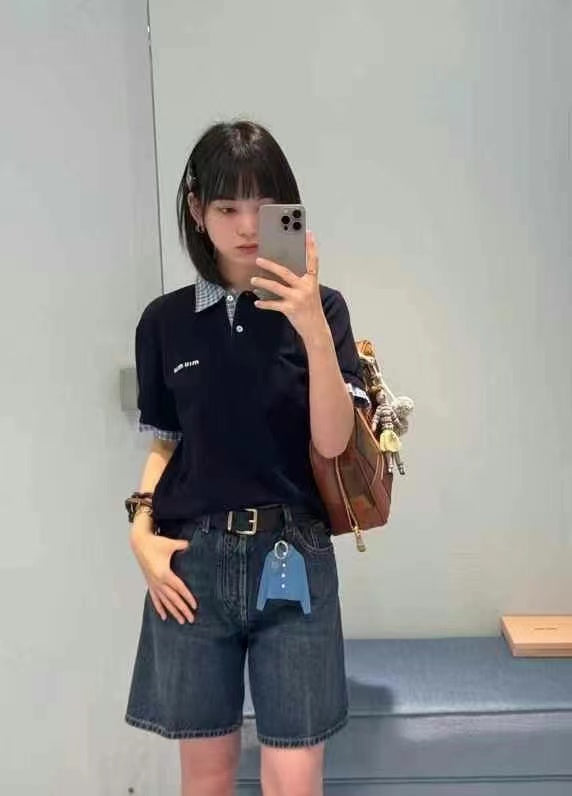 Miu Layered-Effect Cotton Polo Blue Shirt