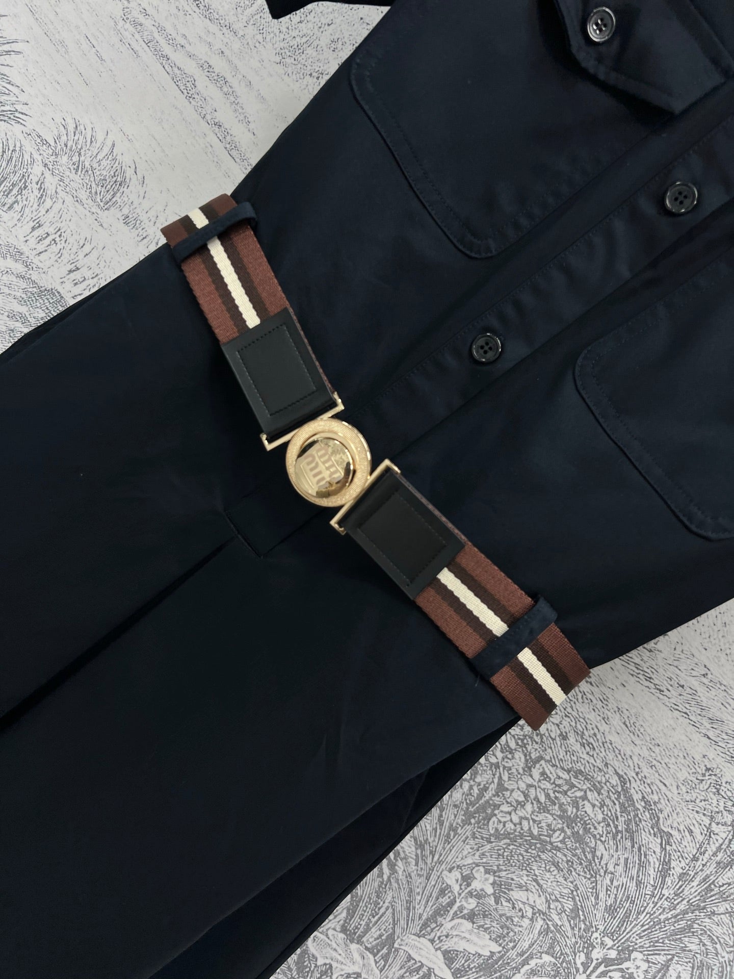 Miu Miu 25 Belt Decorated Denim Dress Black Cotton