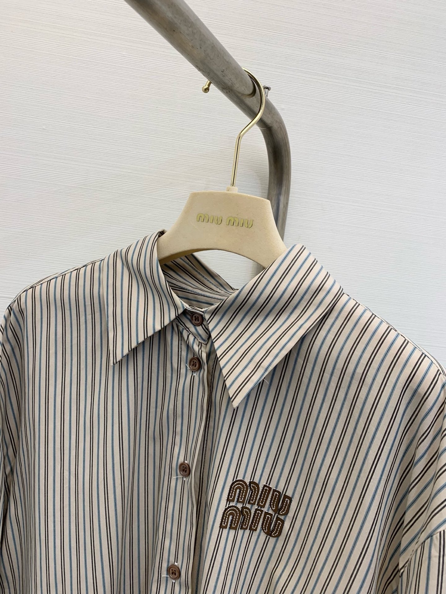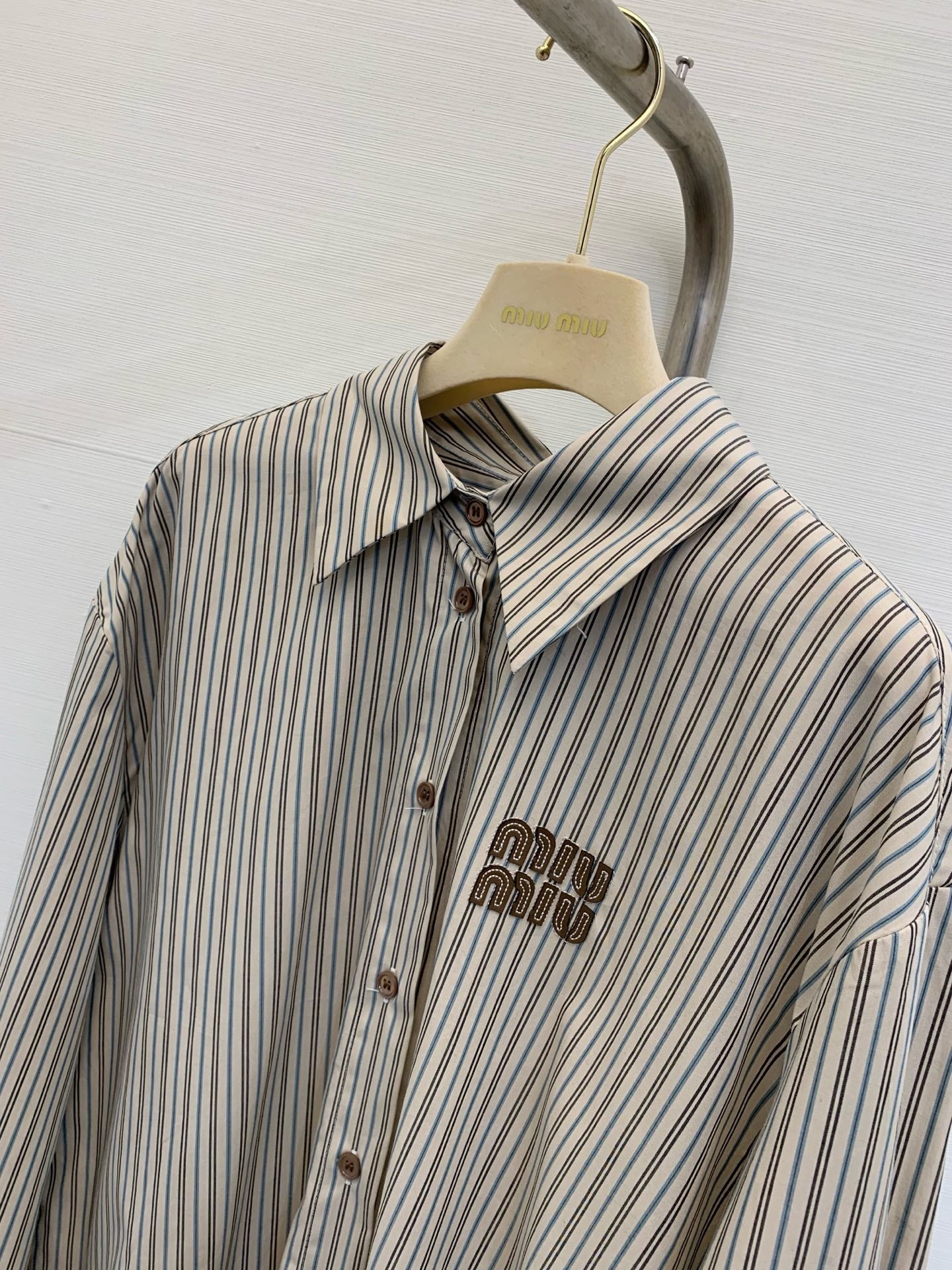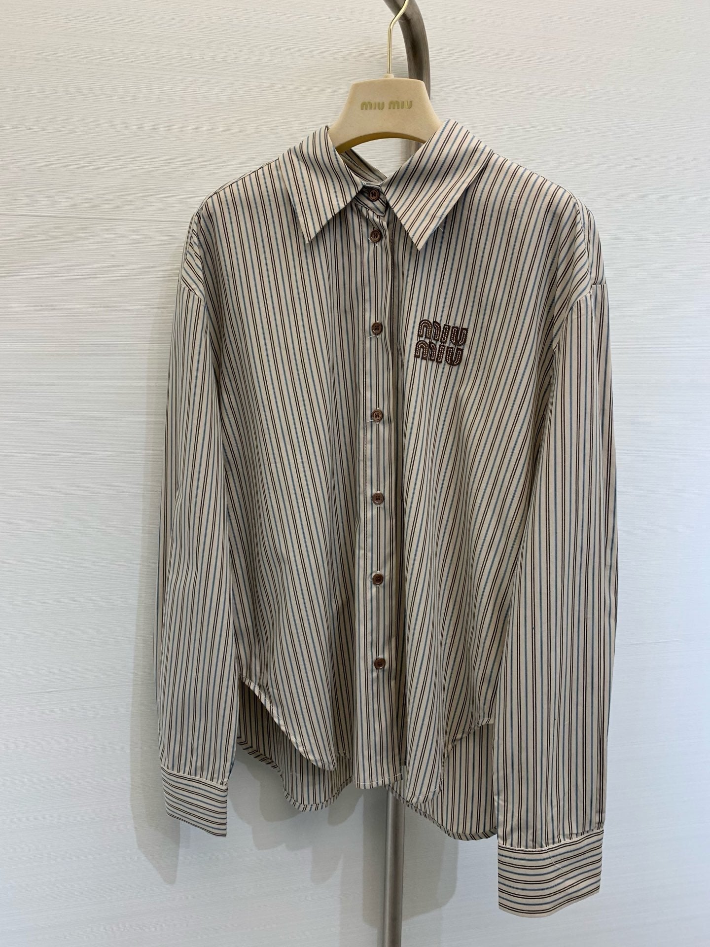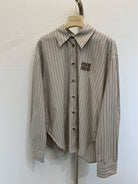 Miu Miu 25 Embroidered Striped Shirt Beige Brown Cotton