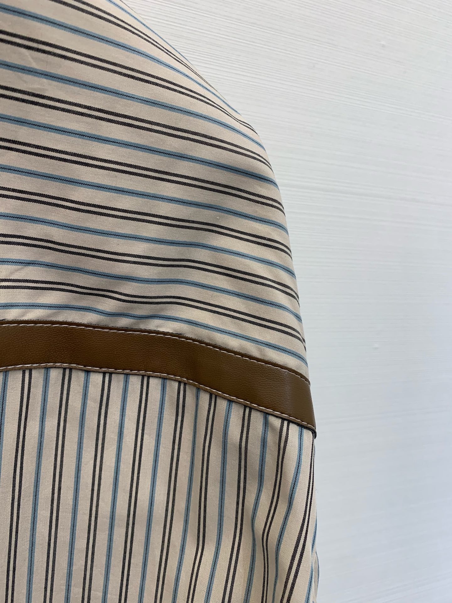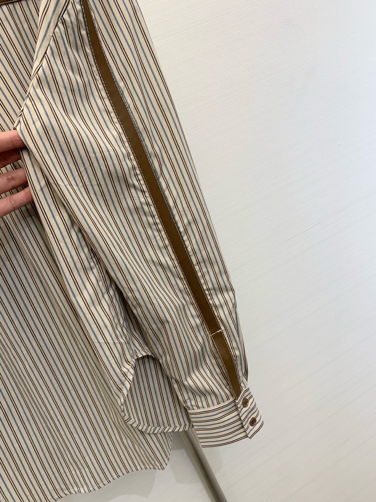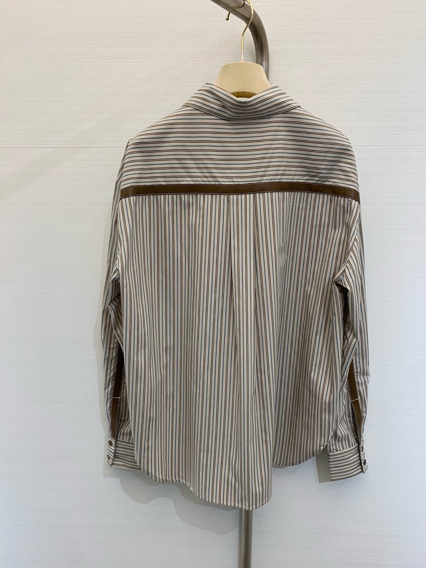 Miu Miu 25 Embroidered Striped Shirt Beige Brown Cotton