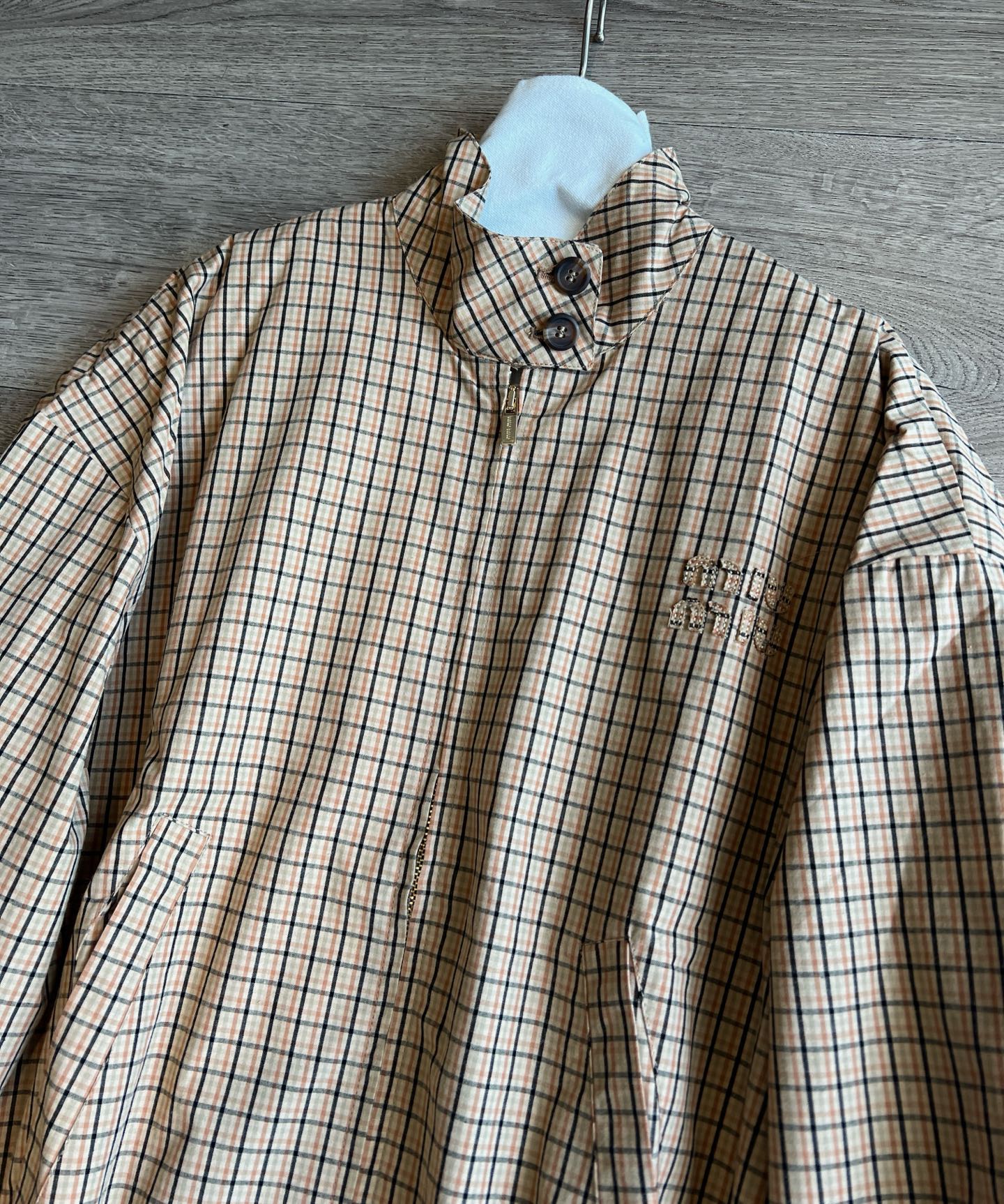 Miu Miu 25 Plaid Stand-up Collar Jacket Katun Pelapis