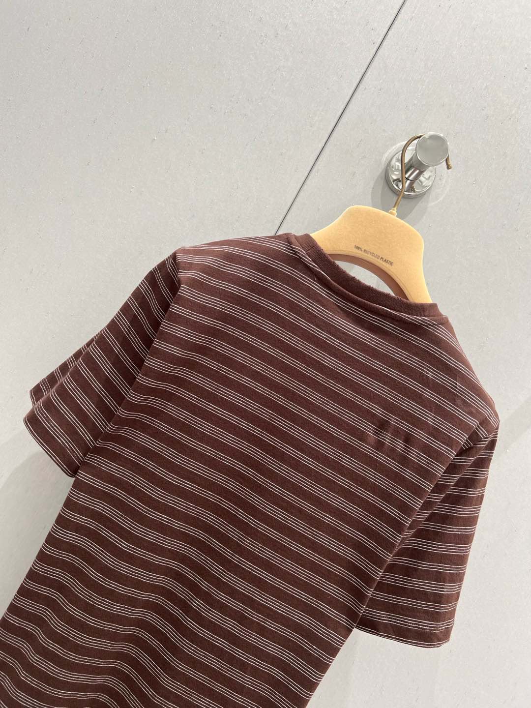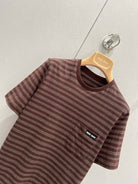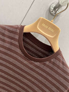 Miu Miu 25 Striped Round Neck Short-sleeved T-shirt Brown Cotton