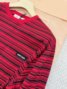 Miumiu 2025 Striped Long-sleeved T-shirt Red Cotton
