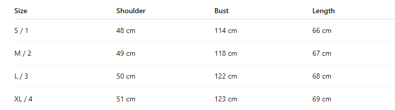 - For more information, please see the size guide below