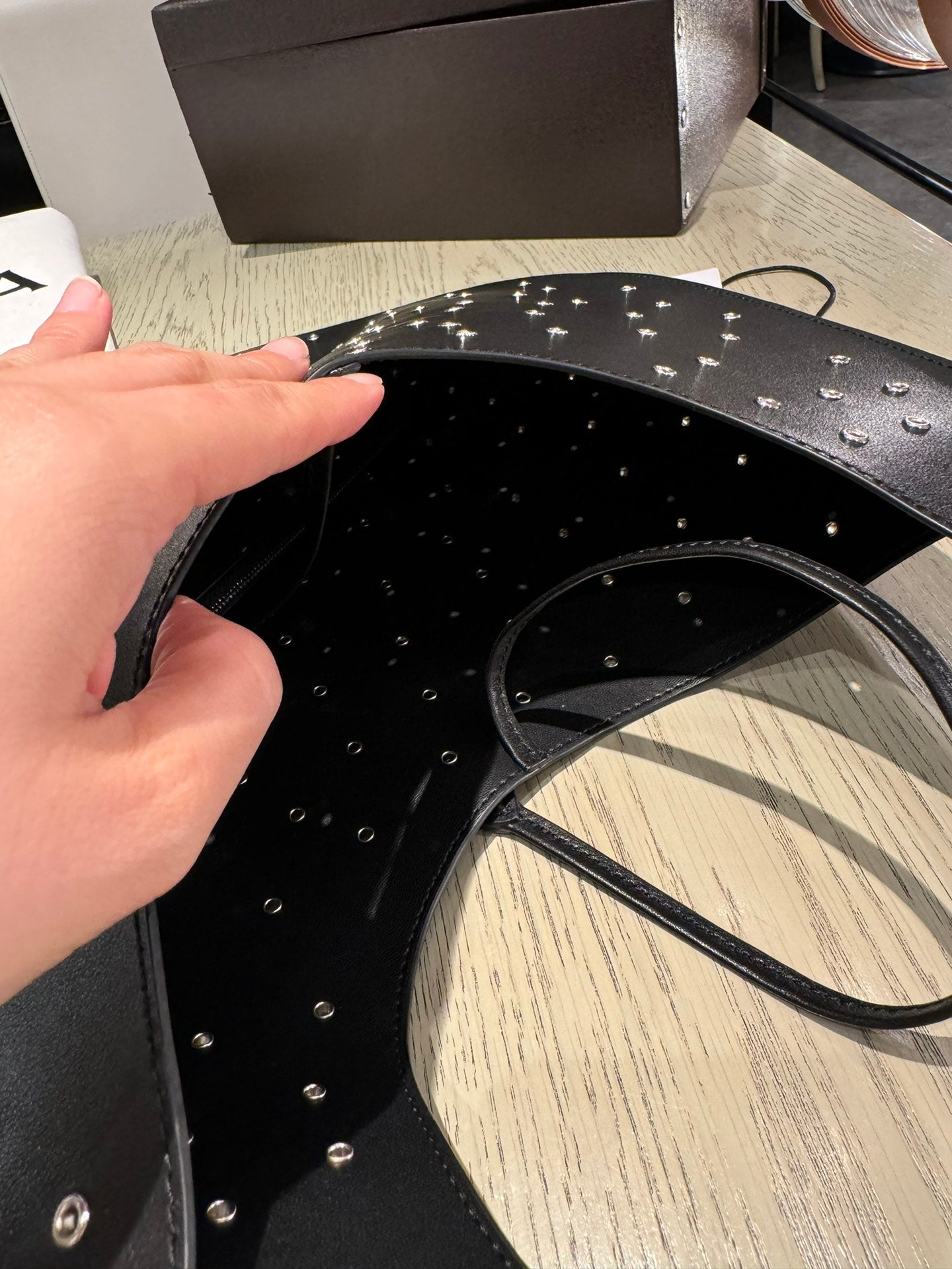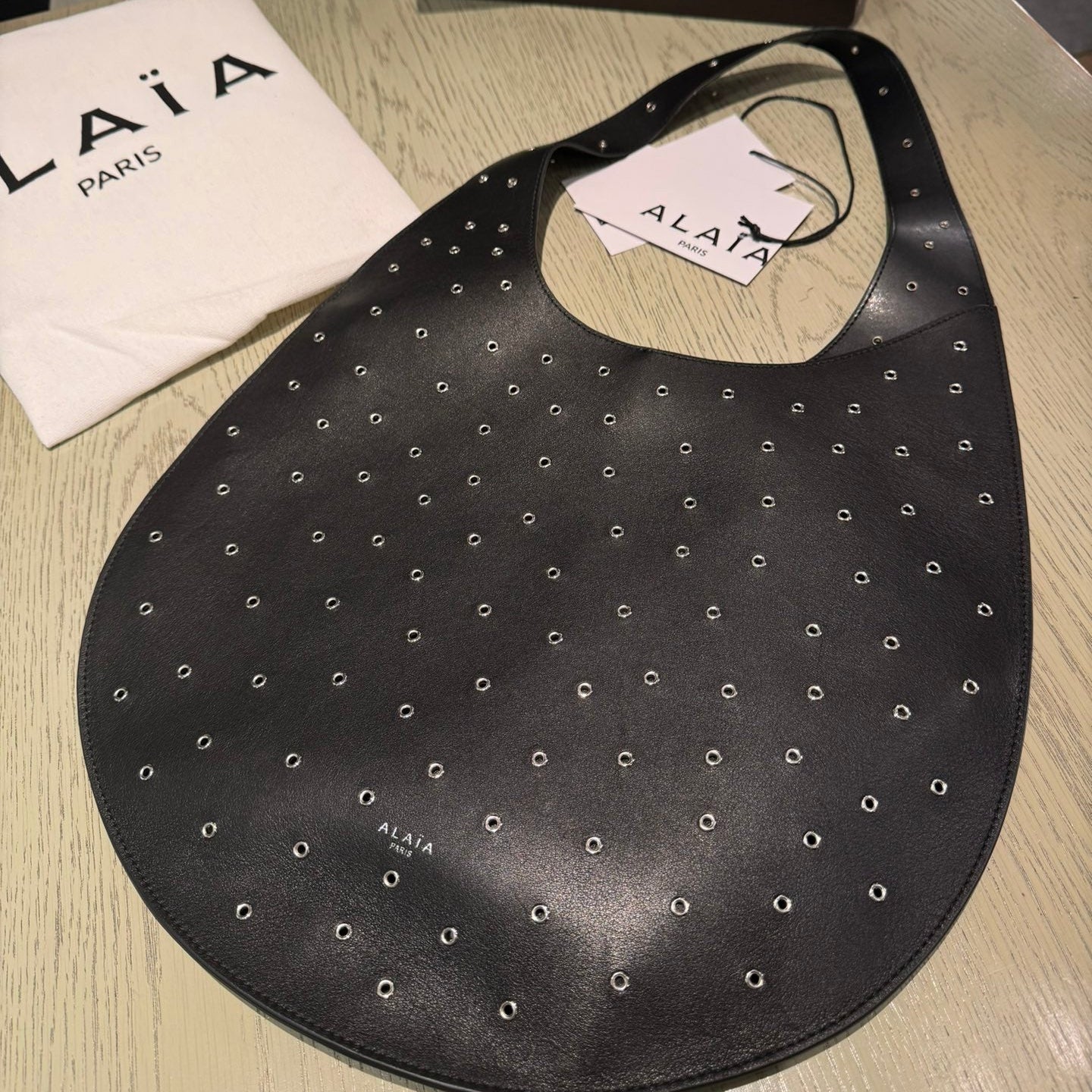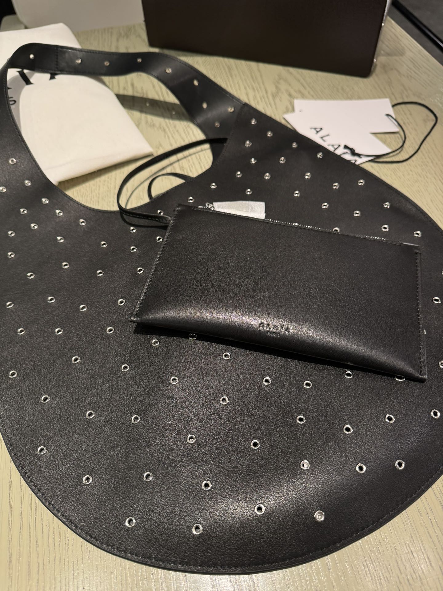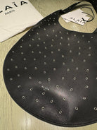 ALAIA Medium Hobo Flat Bag Metal Rivet Black Calfskin 243053