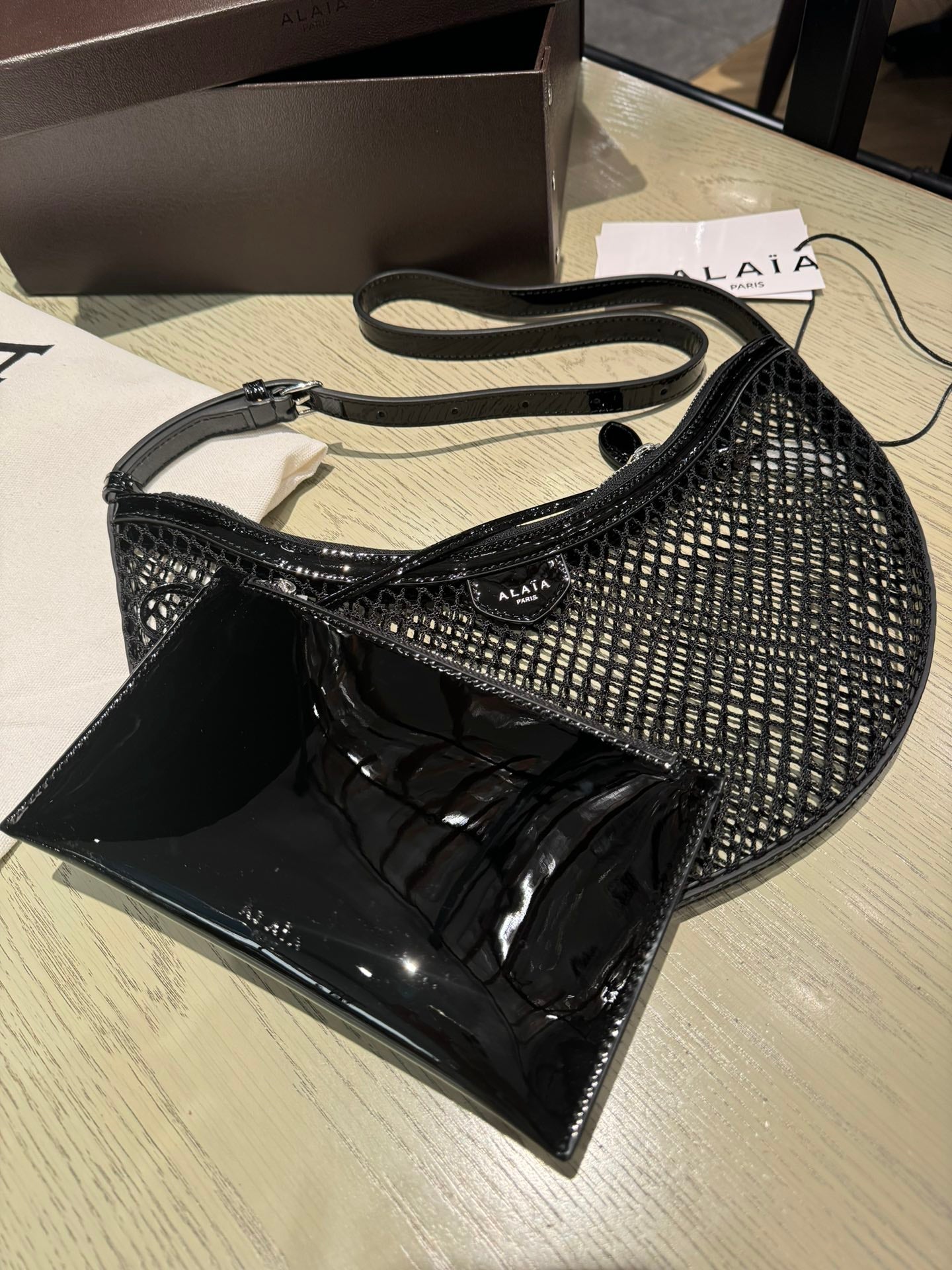 ALAIA ONE PIECE half-moon bag black patent leather 243053