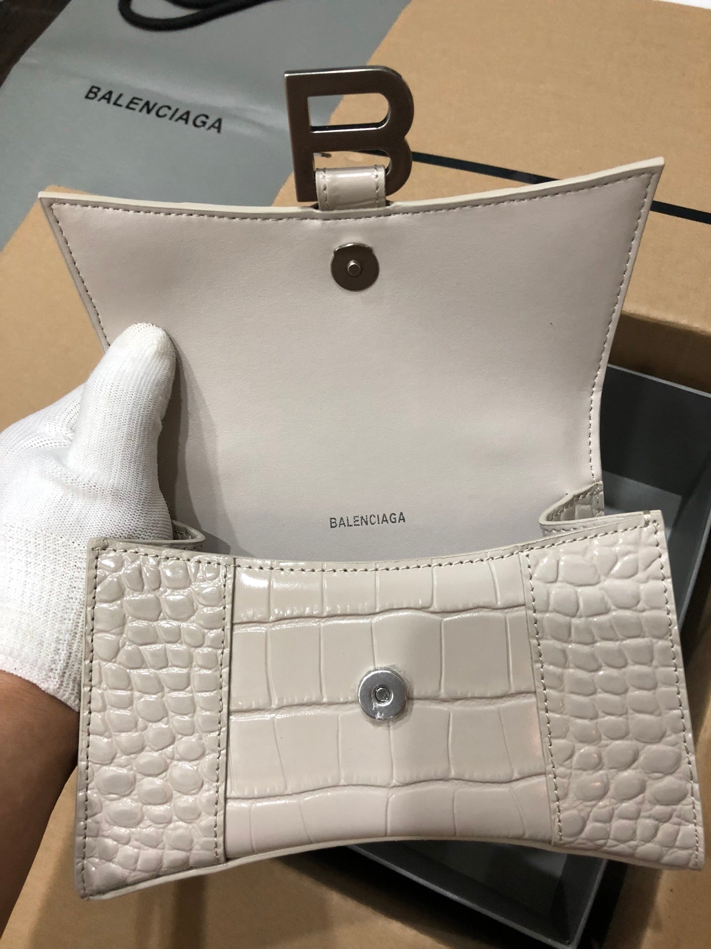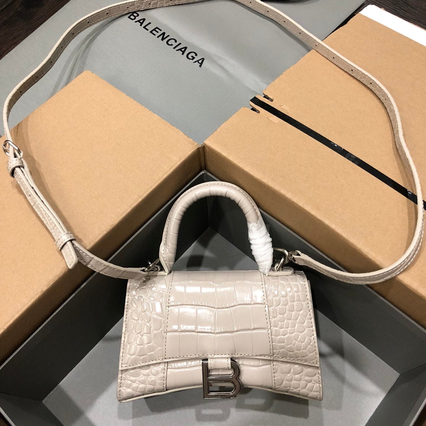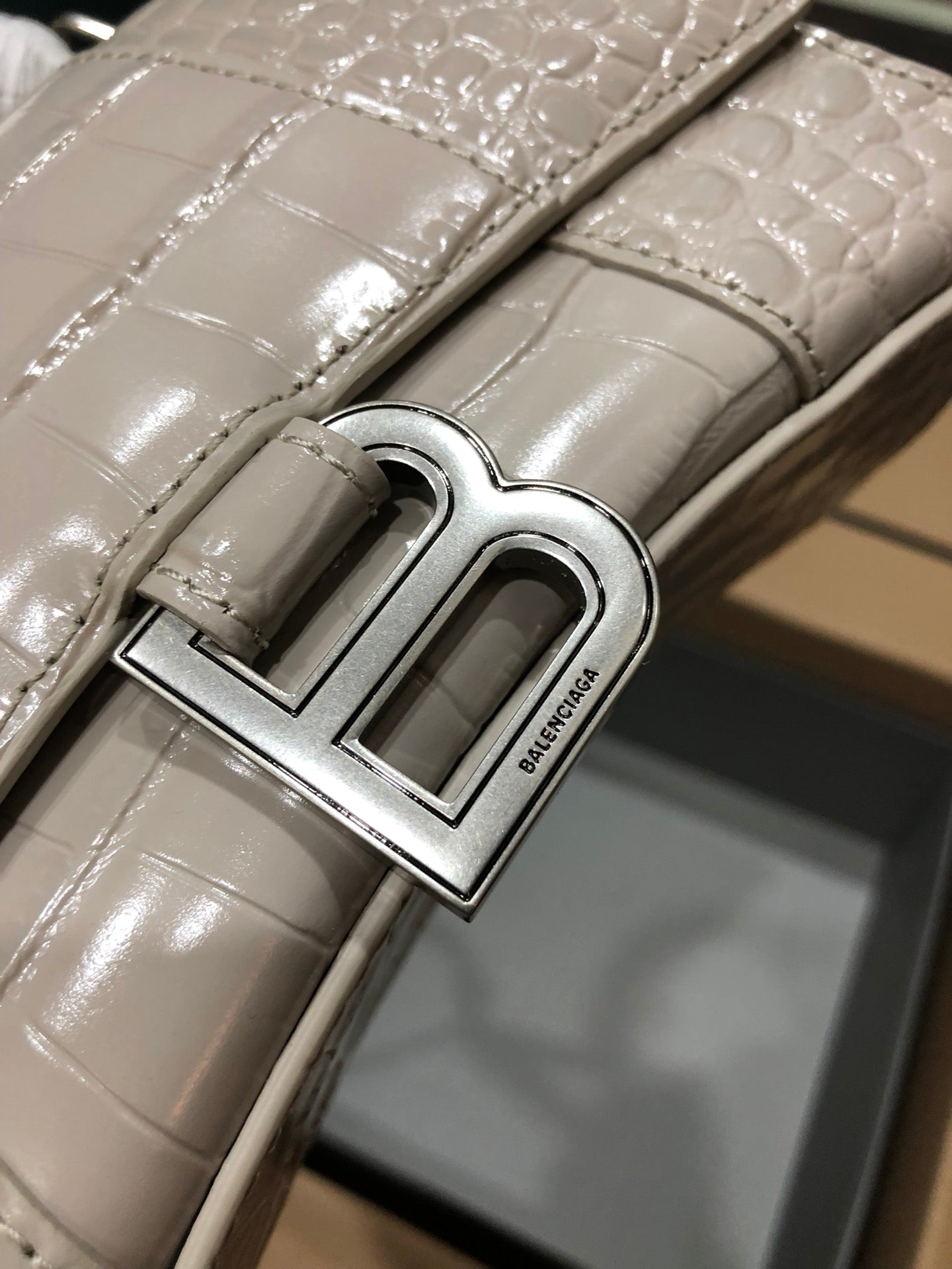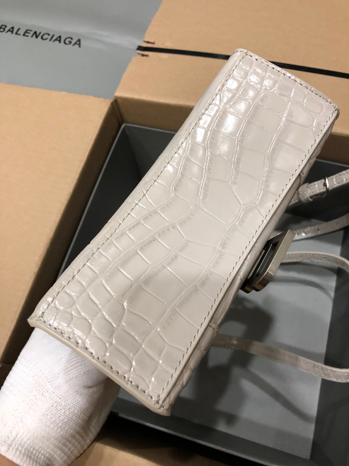 Balenciaga Hourglass bag beige crocodile skin