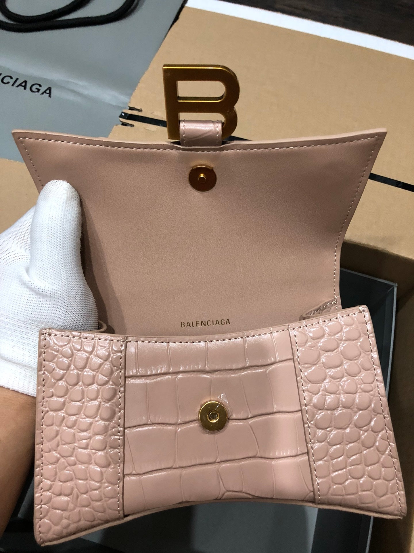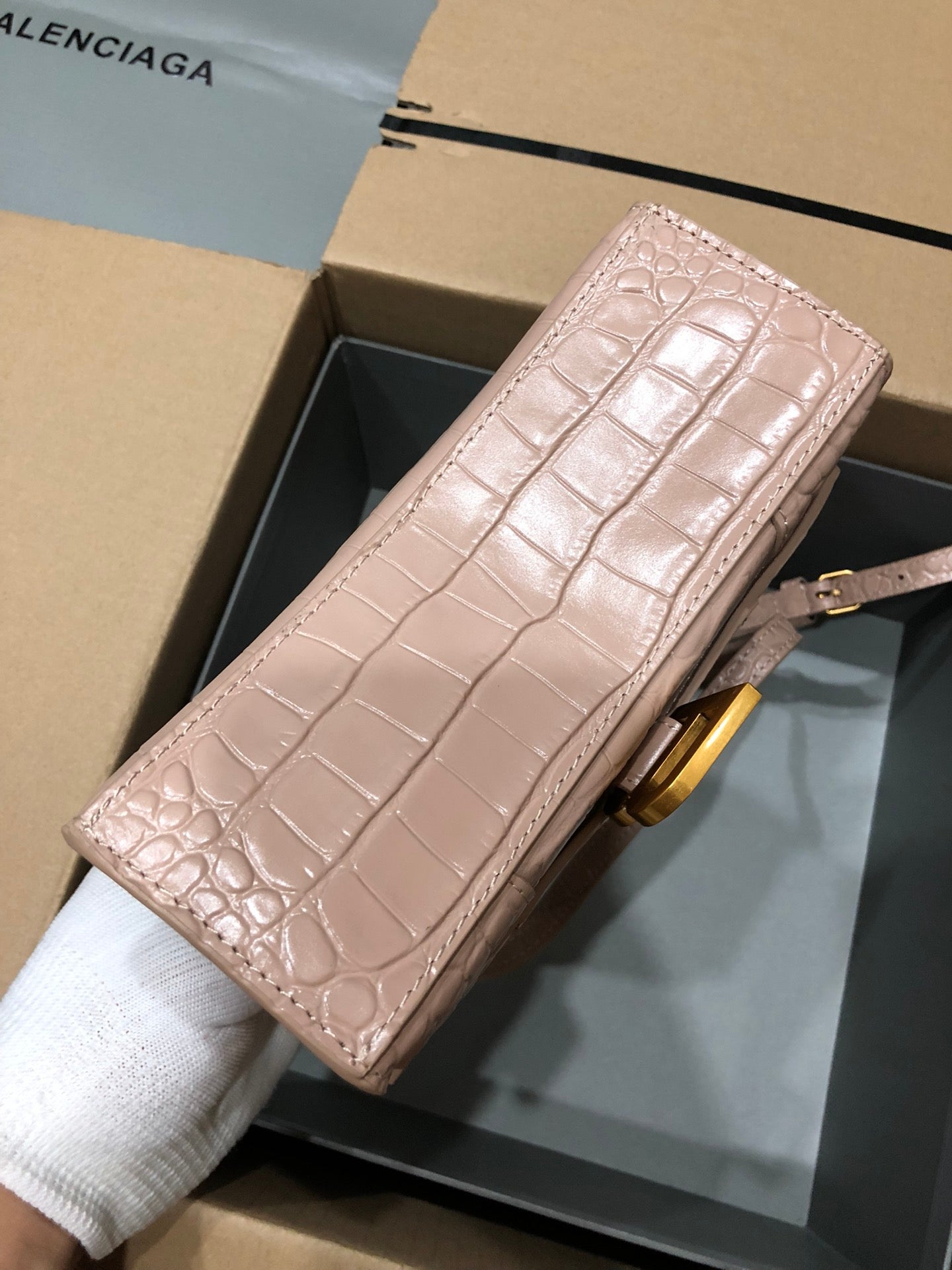 Balenciaga Hourglass bag nude crocodile skin