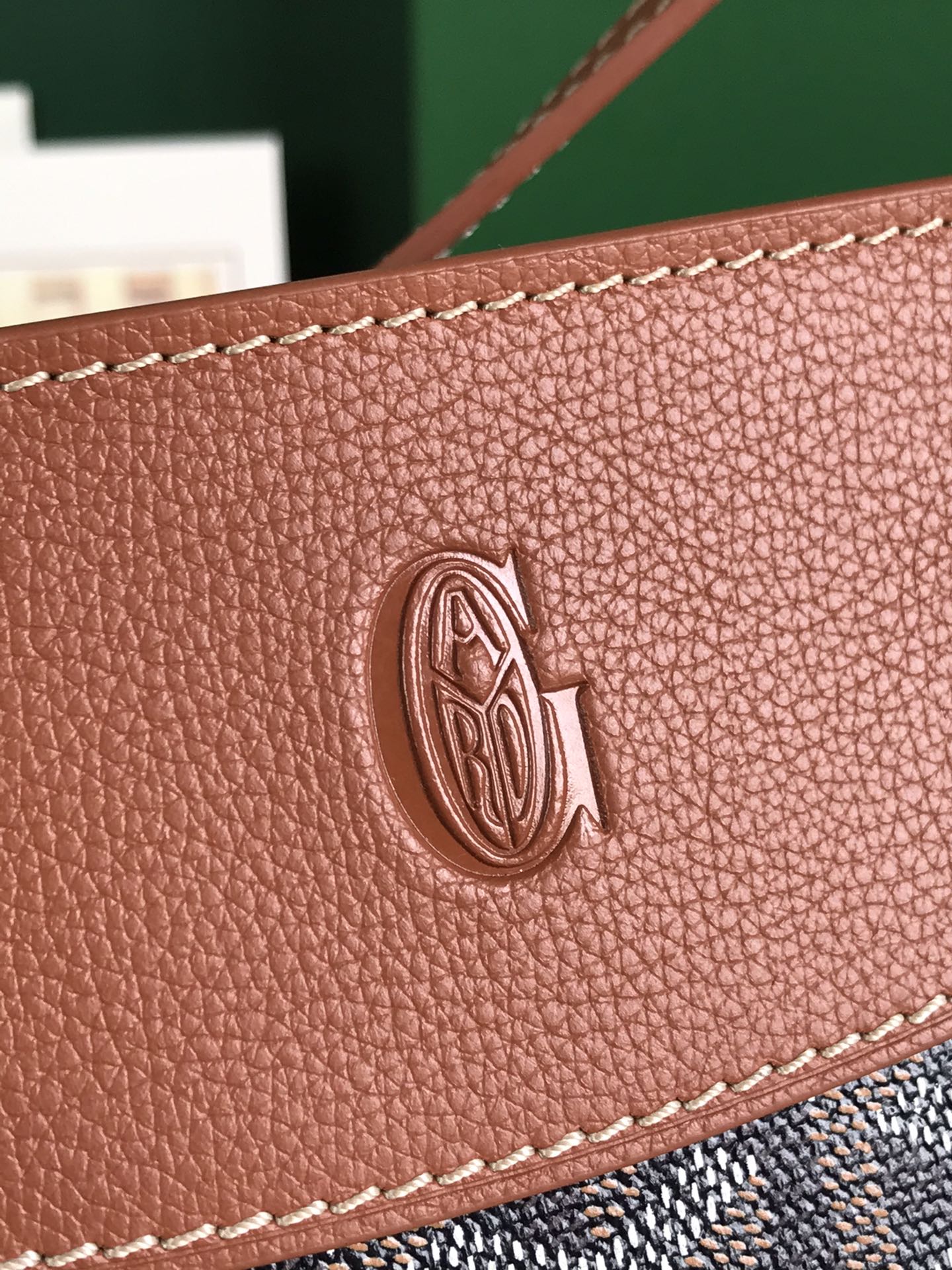 HIRONDELLE BAG 25 IN TAN LAMBSKIN AND BLACK GOYARDINE CANVAS