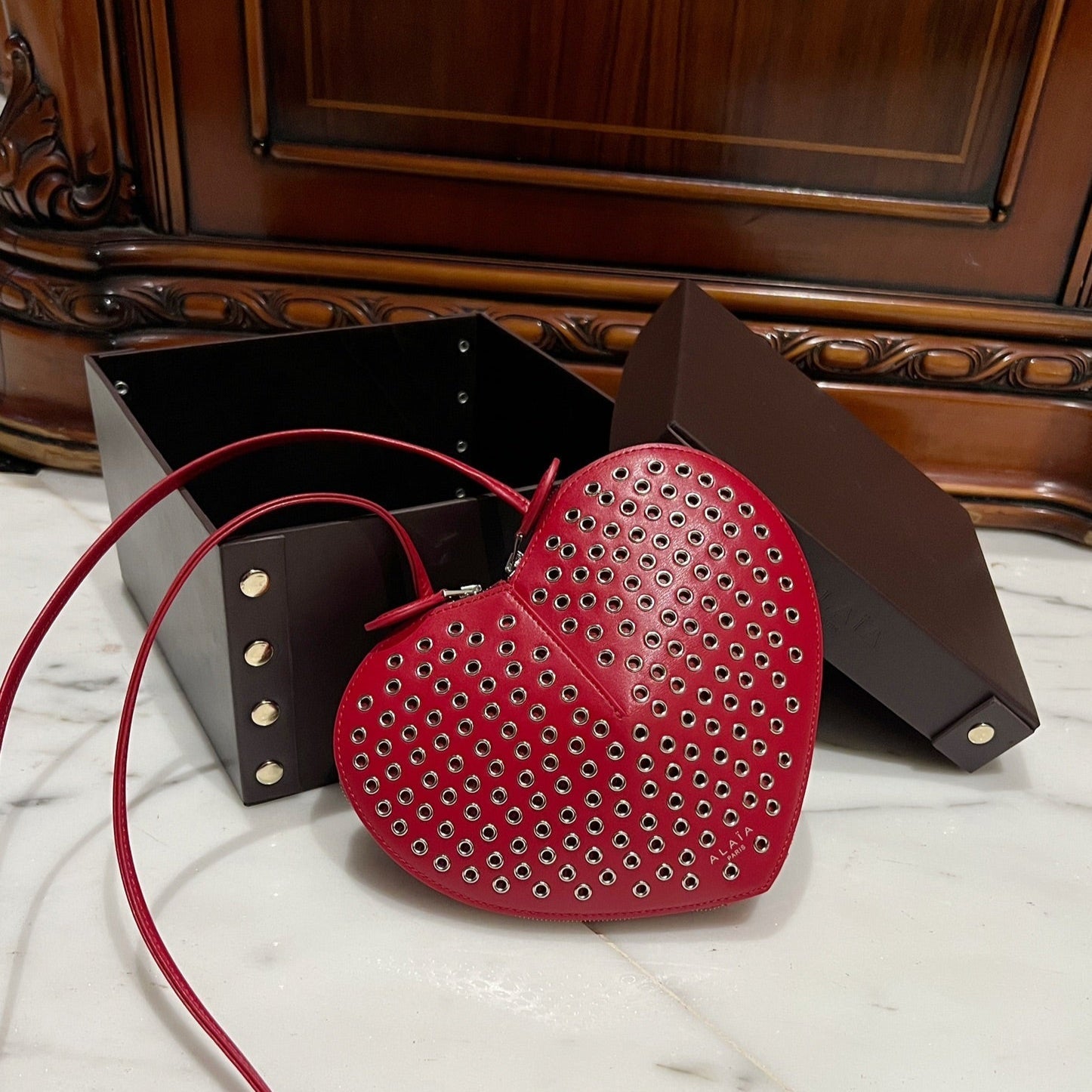 Le Coeur 21cm Red Metal Rivet Calfskin Shouder 243049