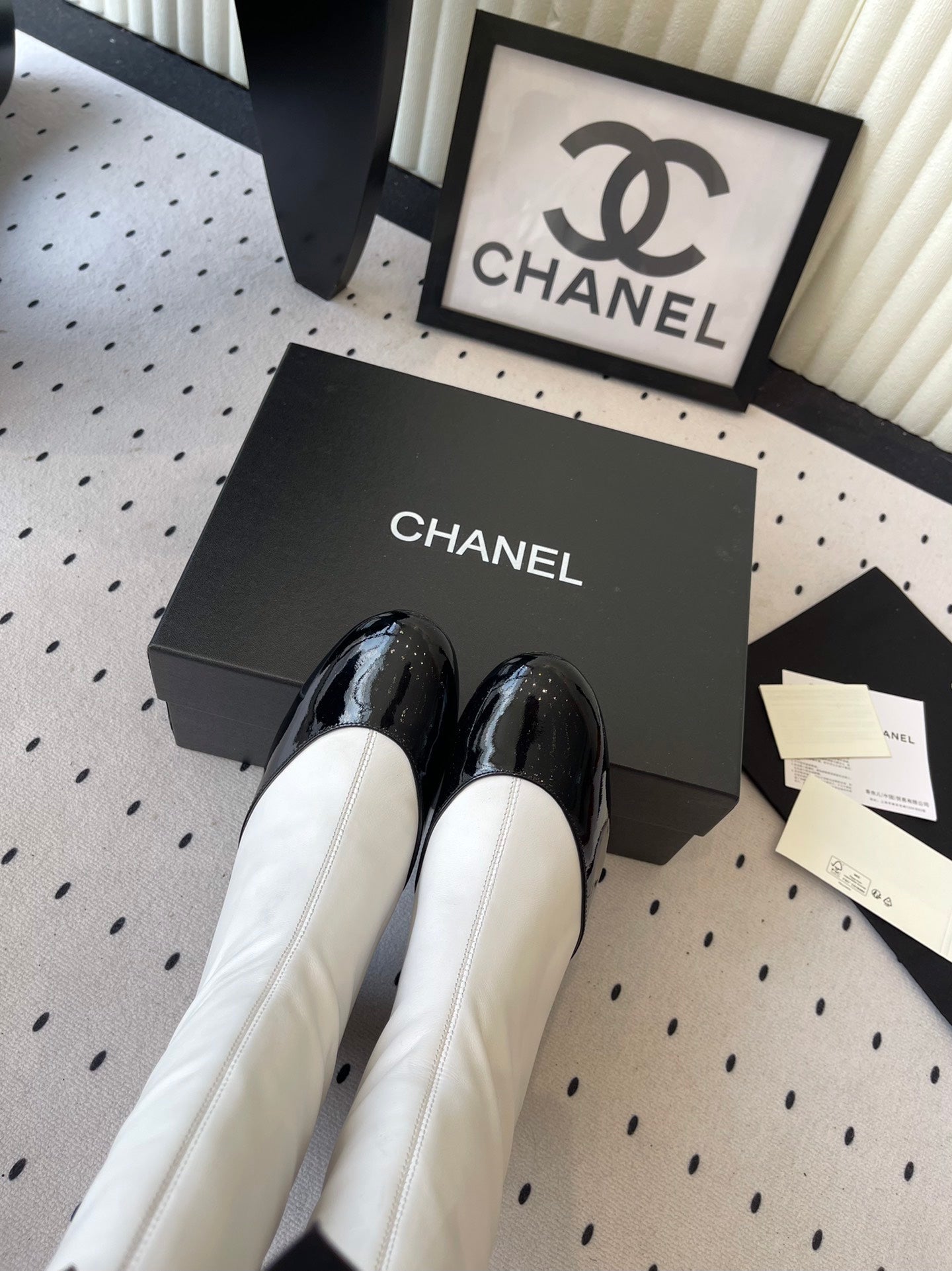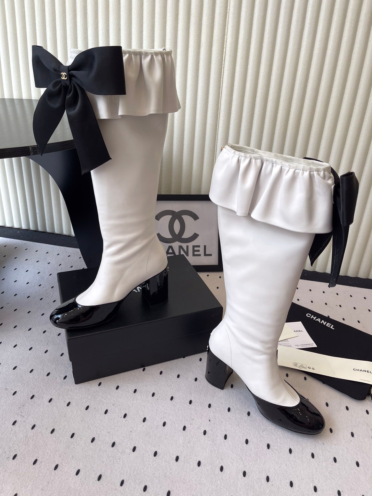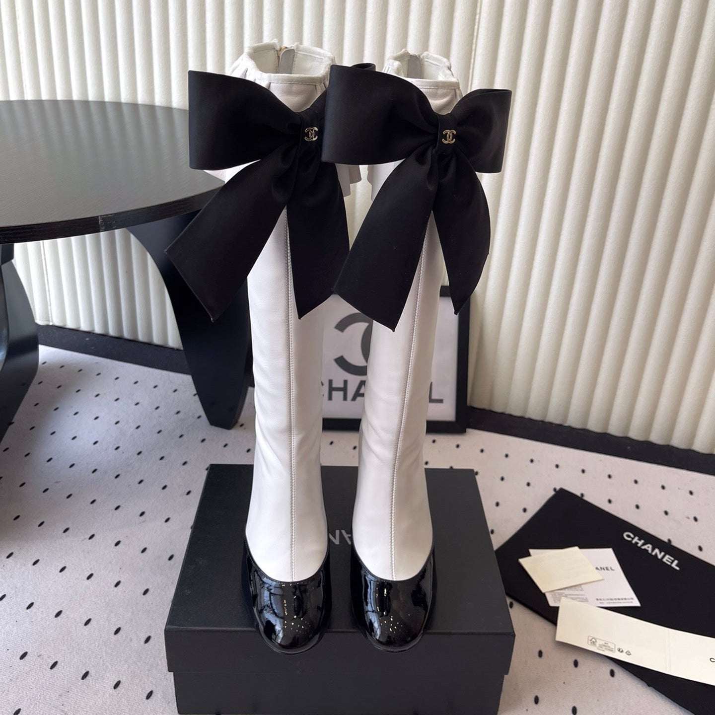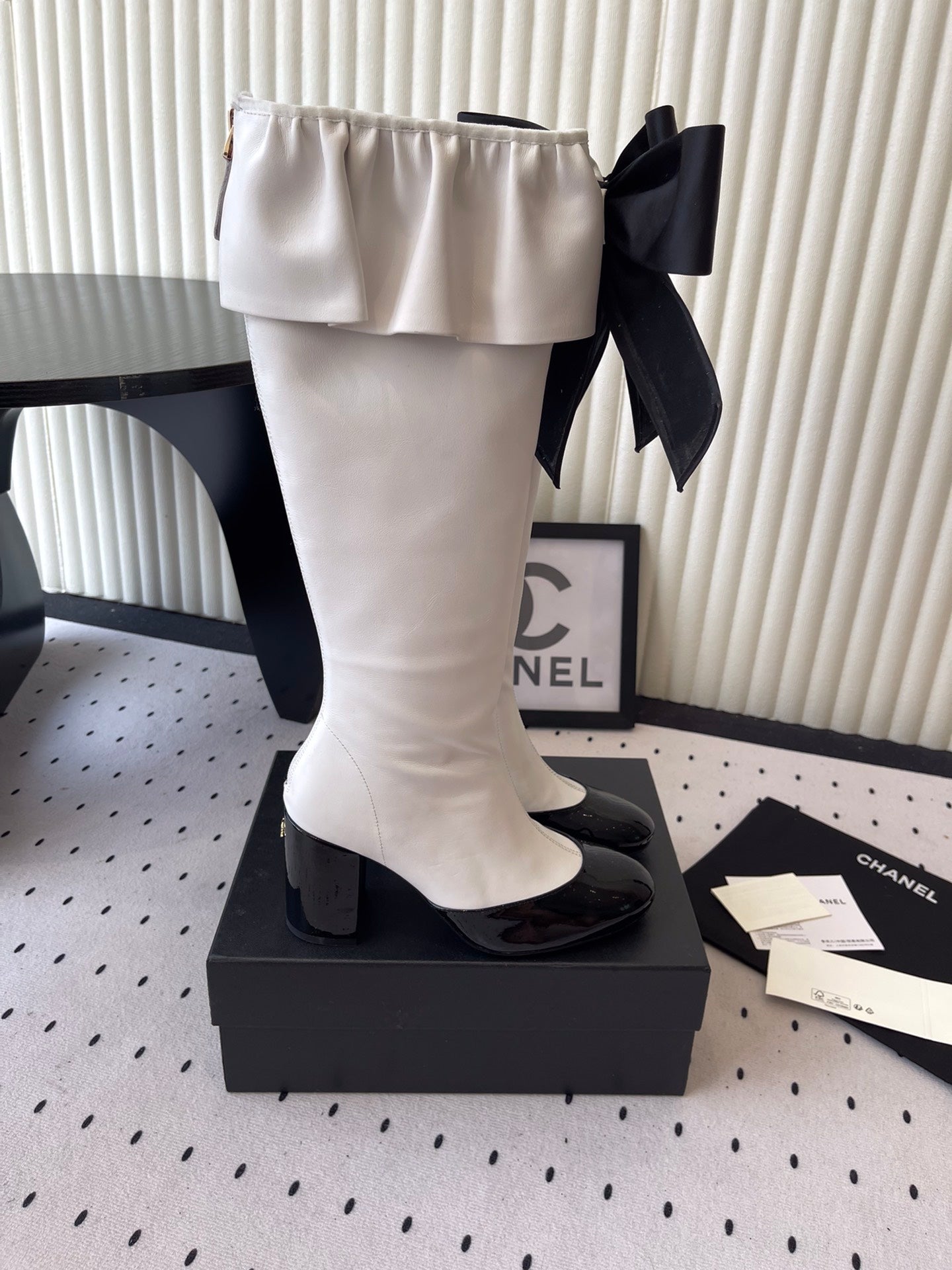 CC 25 Bow Elastic Boot White Black Lambskin 514028