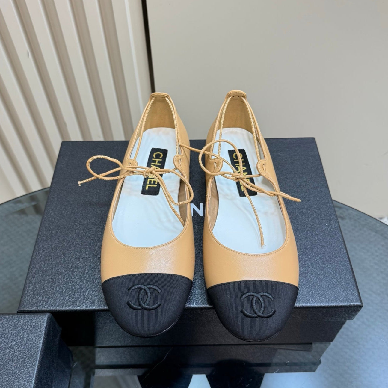 CC 25 Mary Jane Flat Buff Brown Leather with Fabric 239406