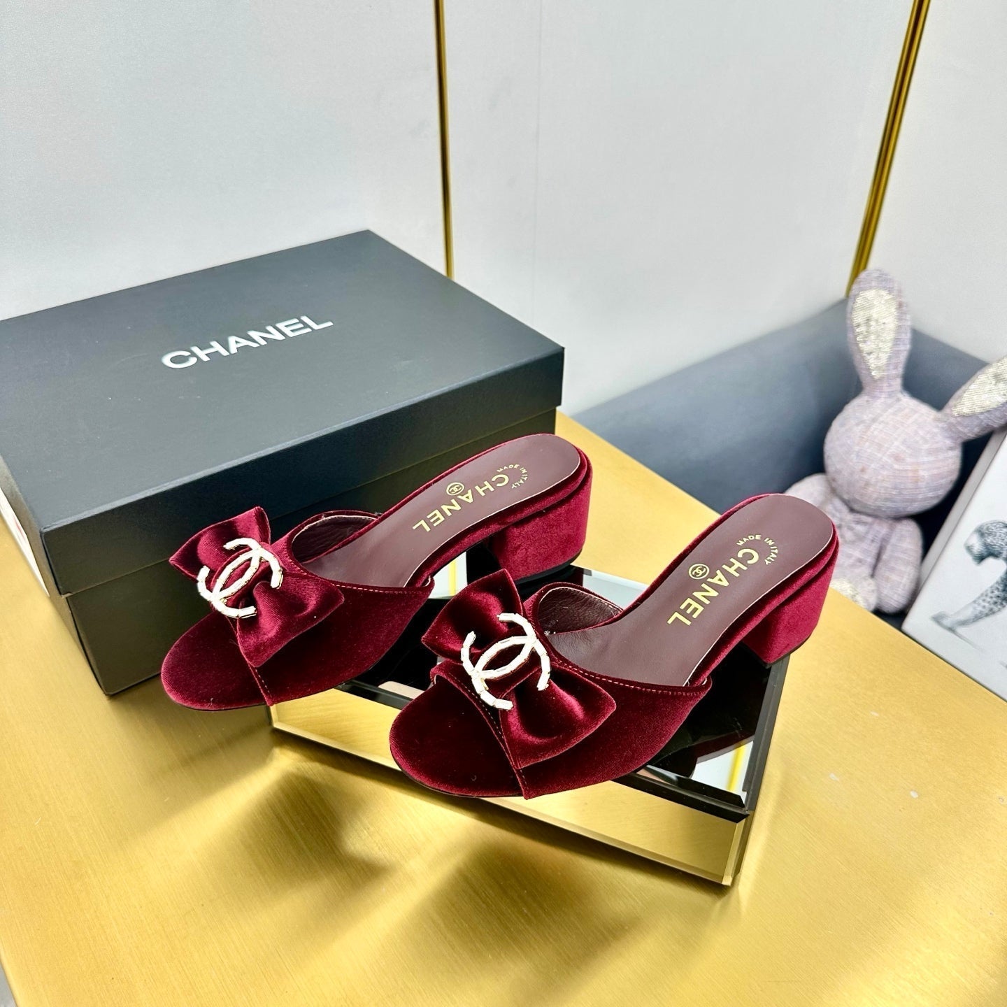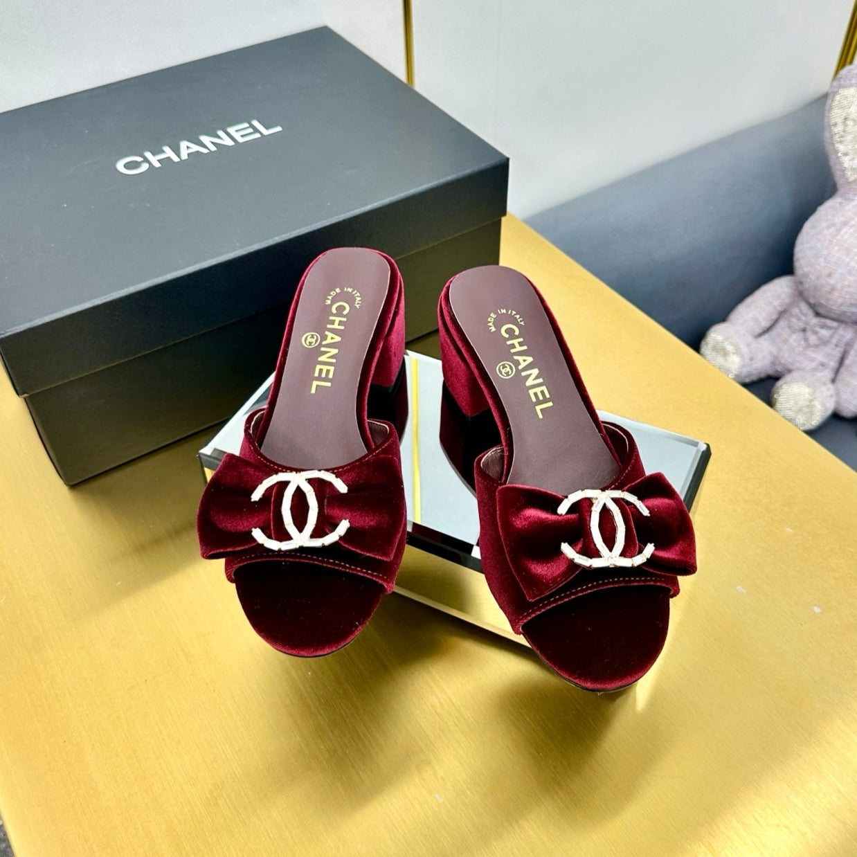 CC 25 Mid Heel Mules Burgundy Red Velvet 238479