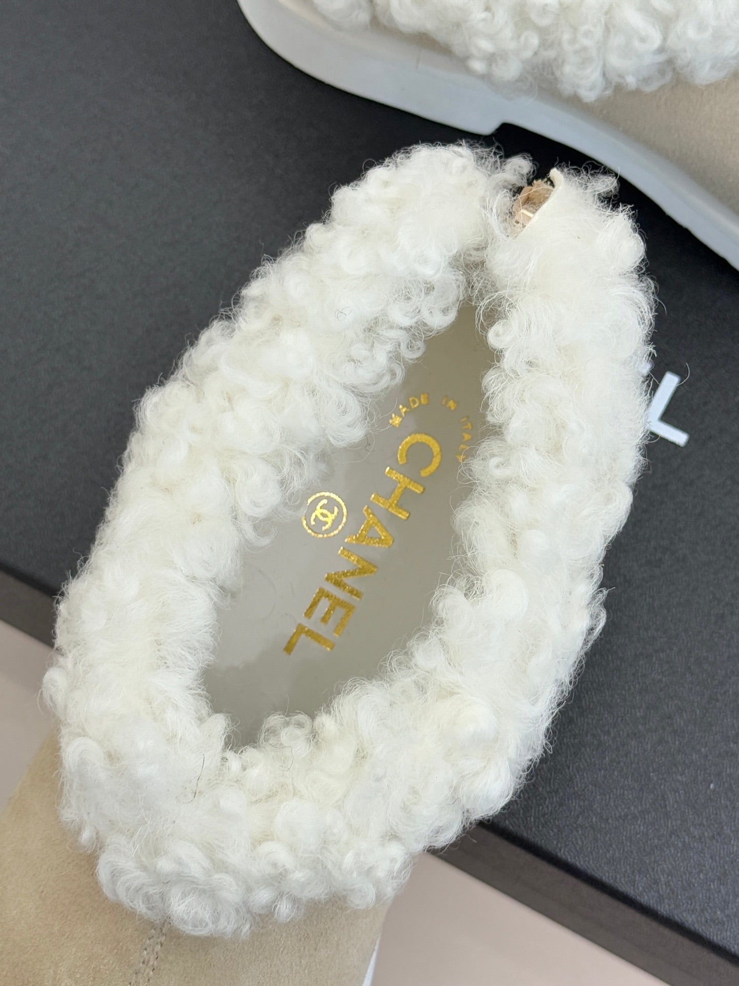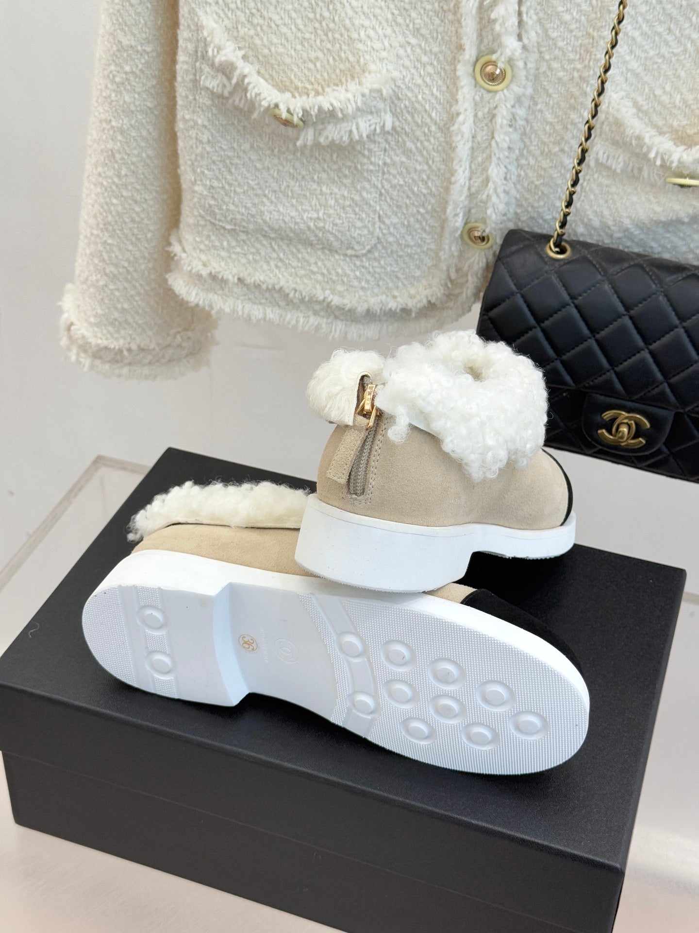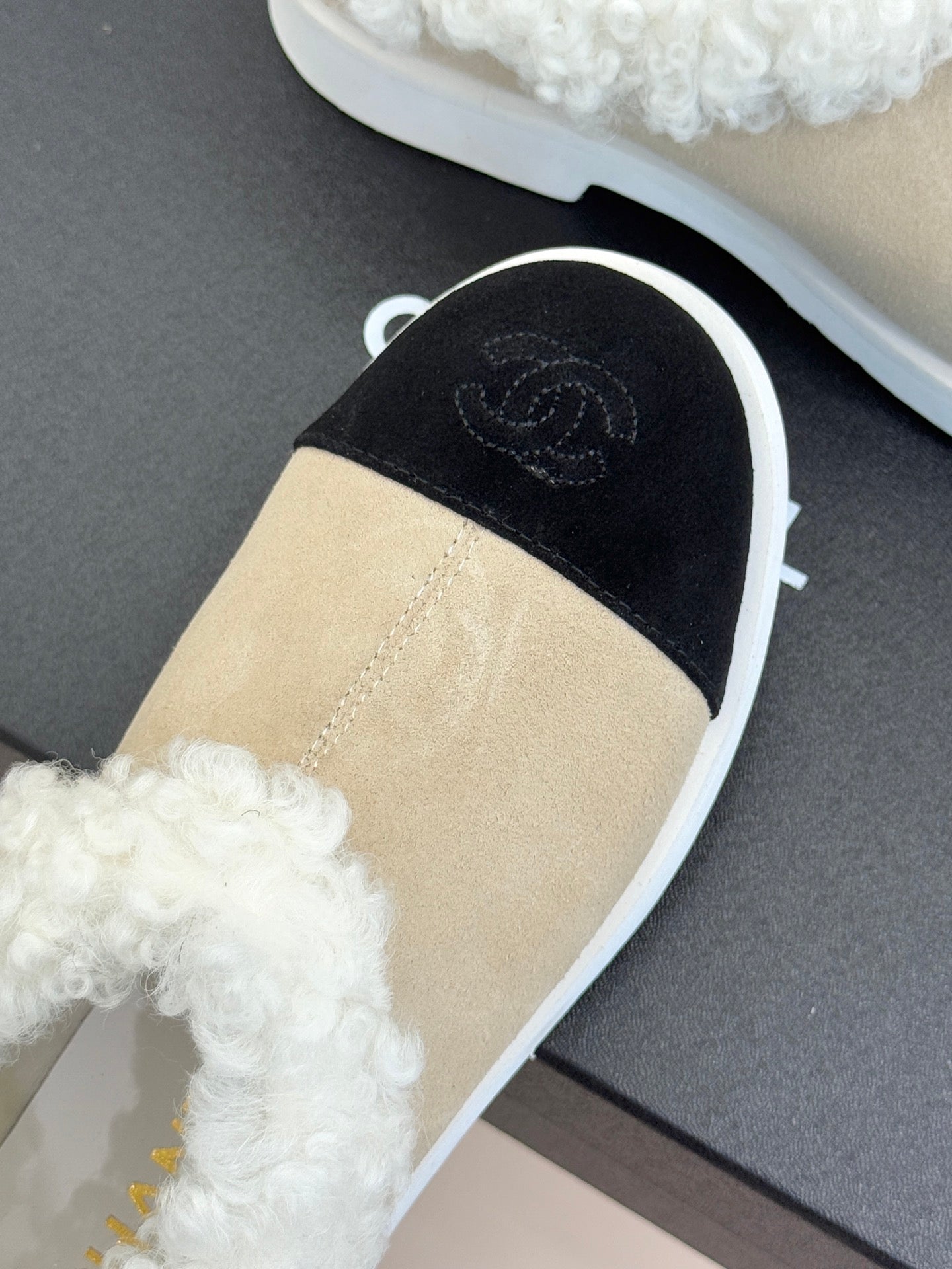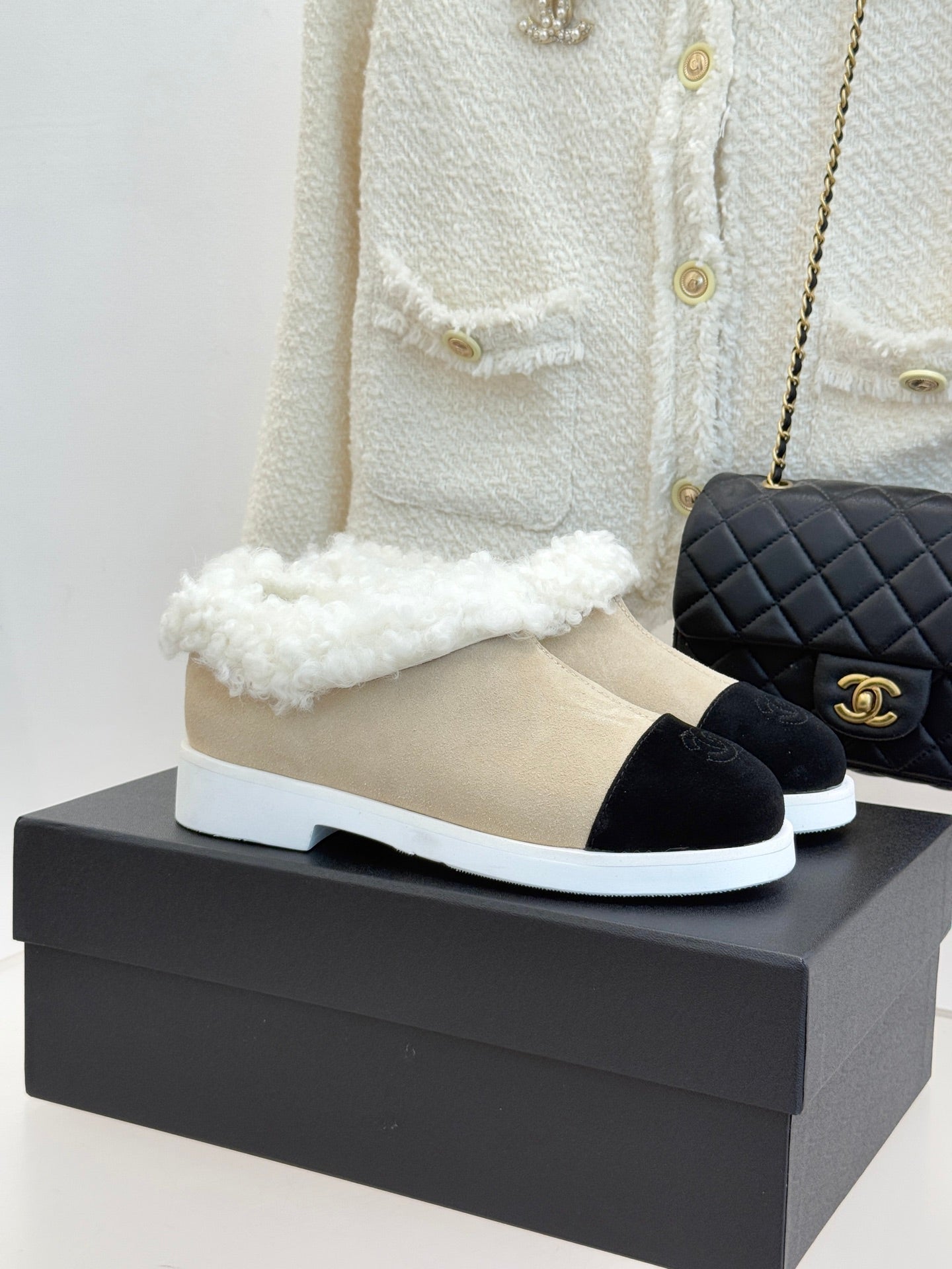 CC 25s Furry Snow Boots Beige Black Suede Wool 512063