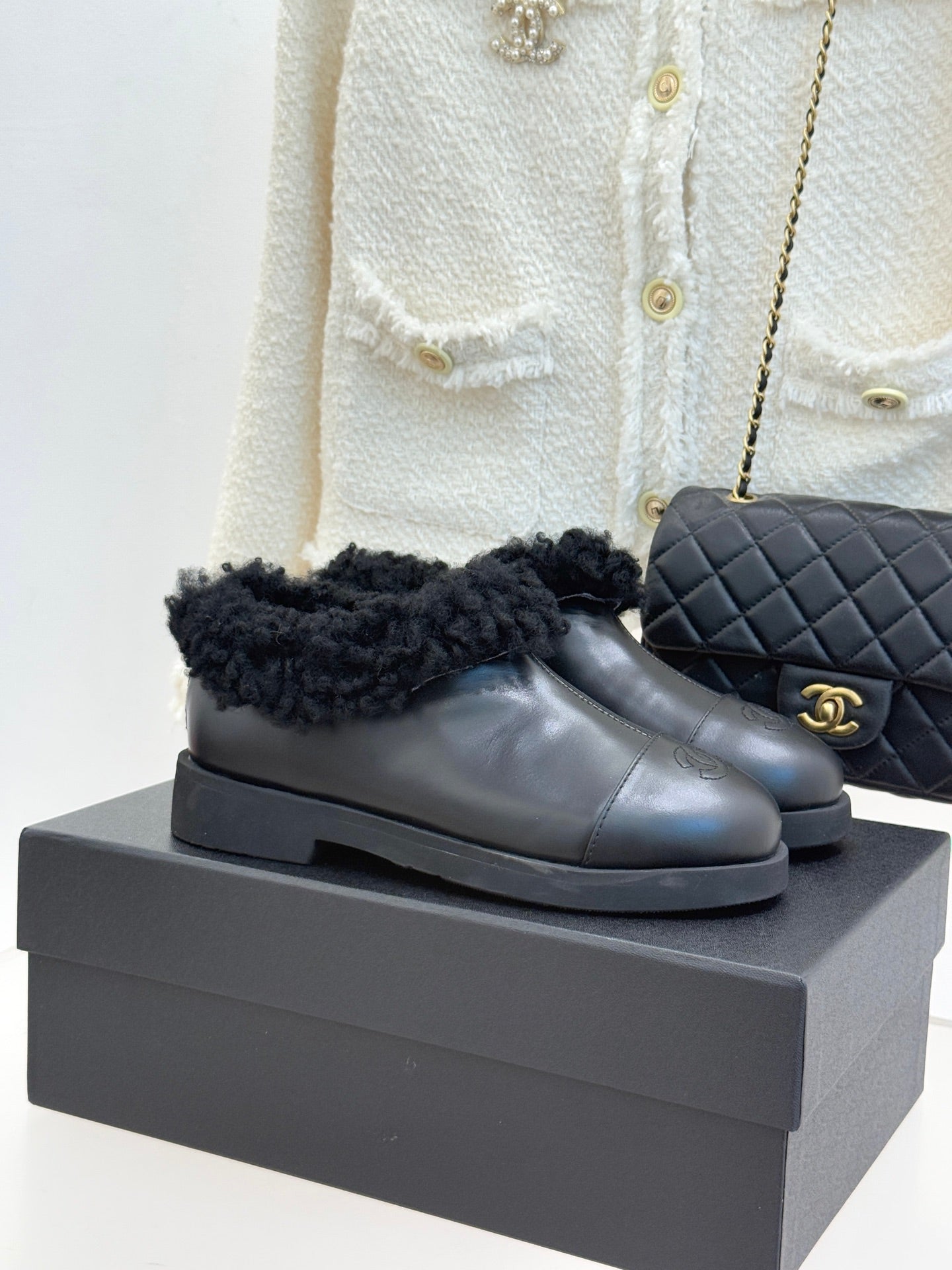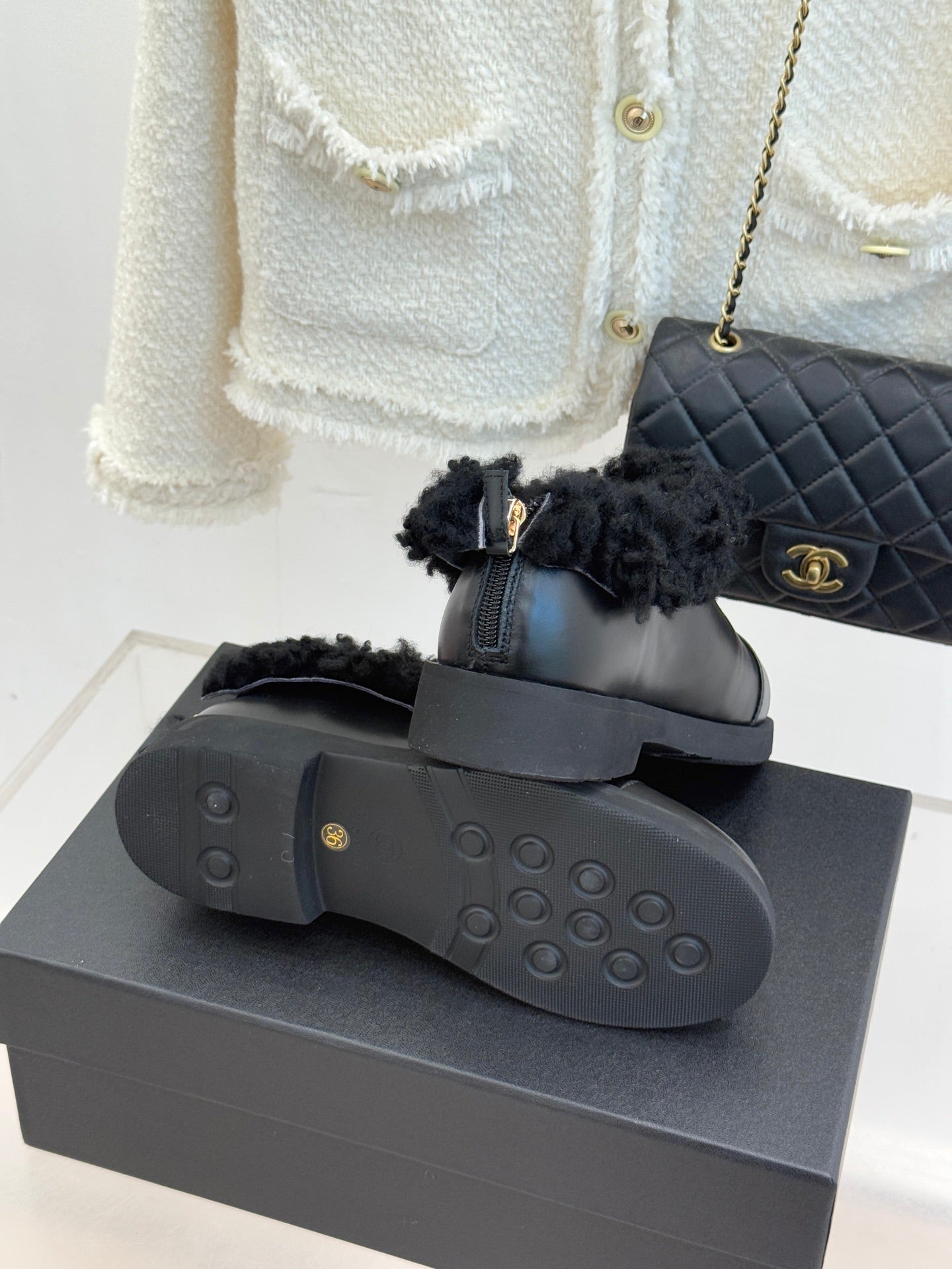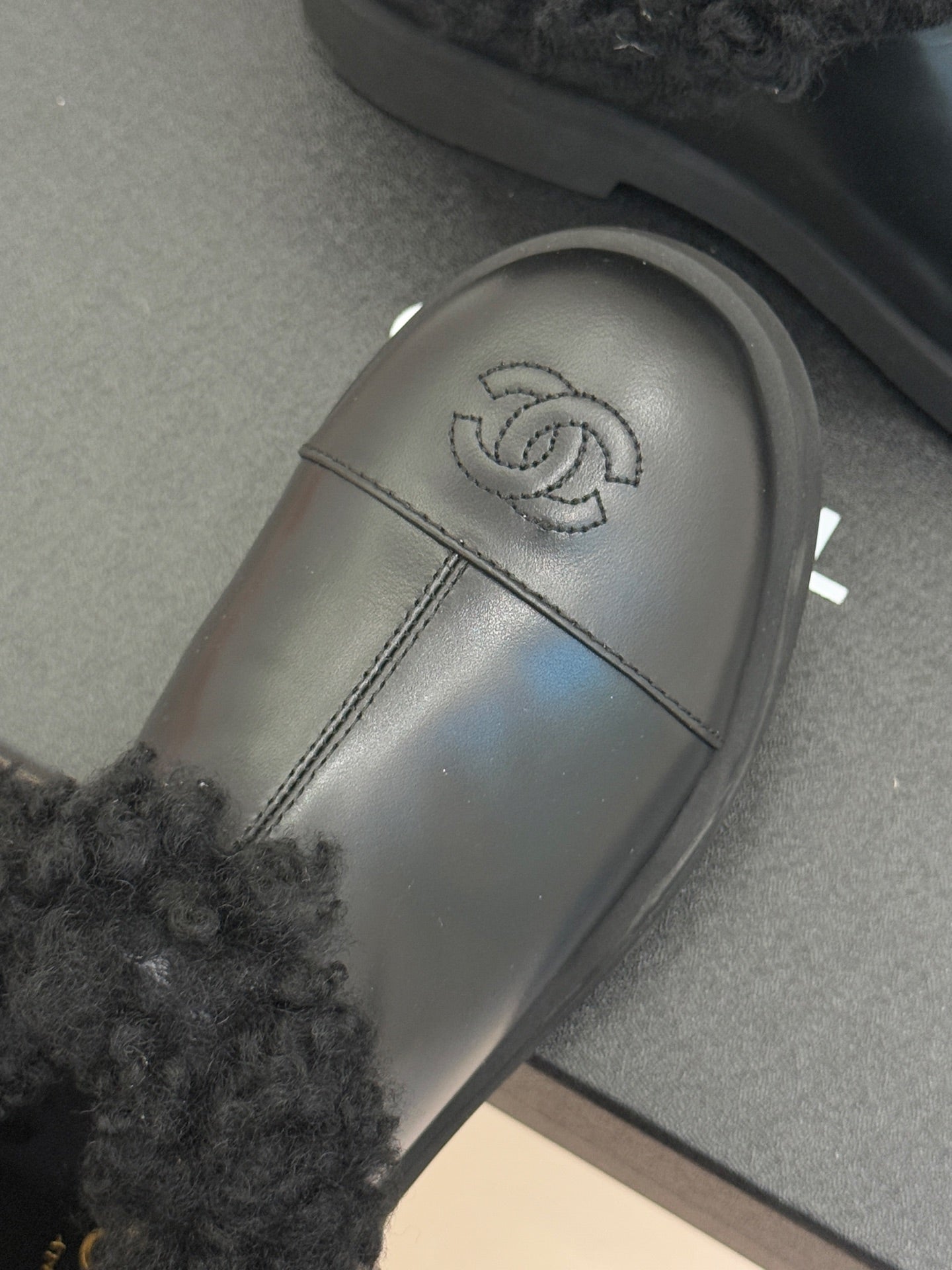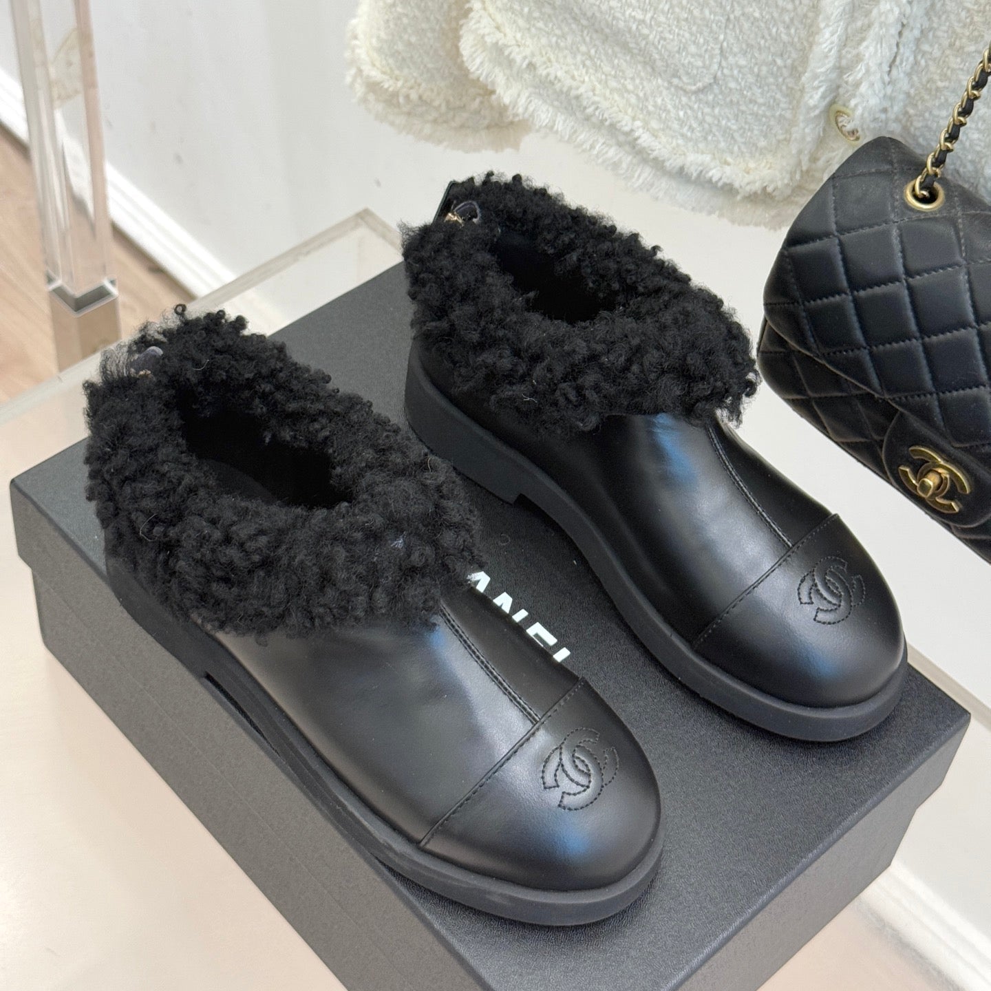 CC 25s Furry Snow Boots Black Leather Wool 512066