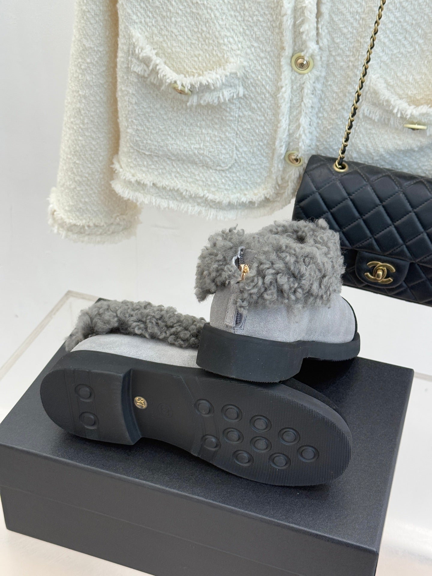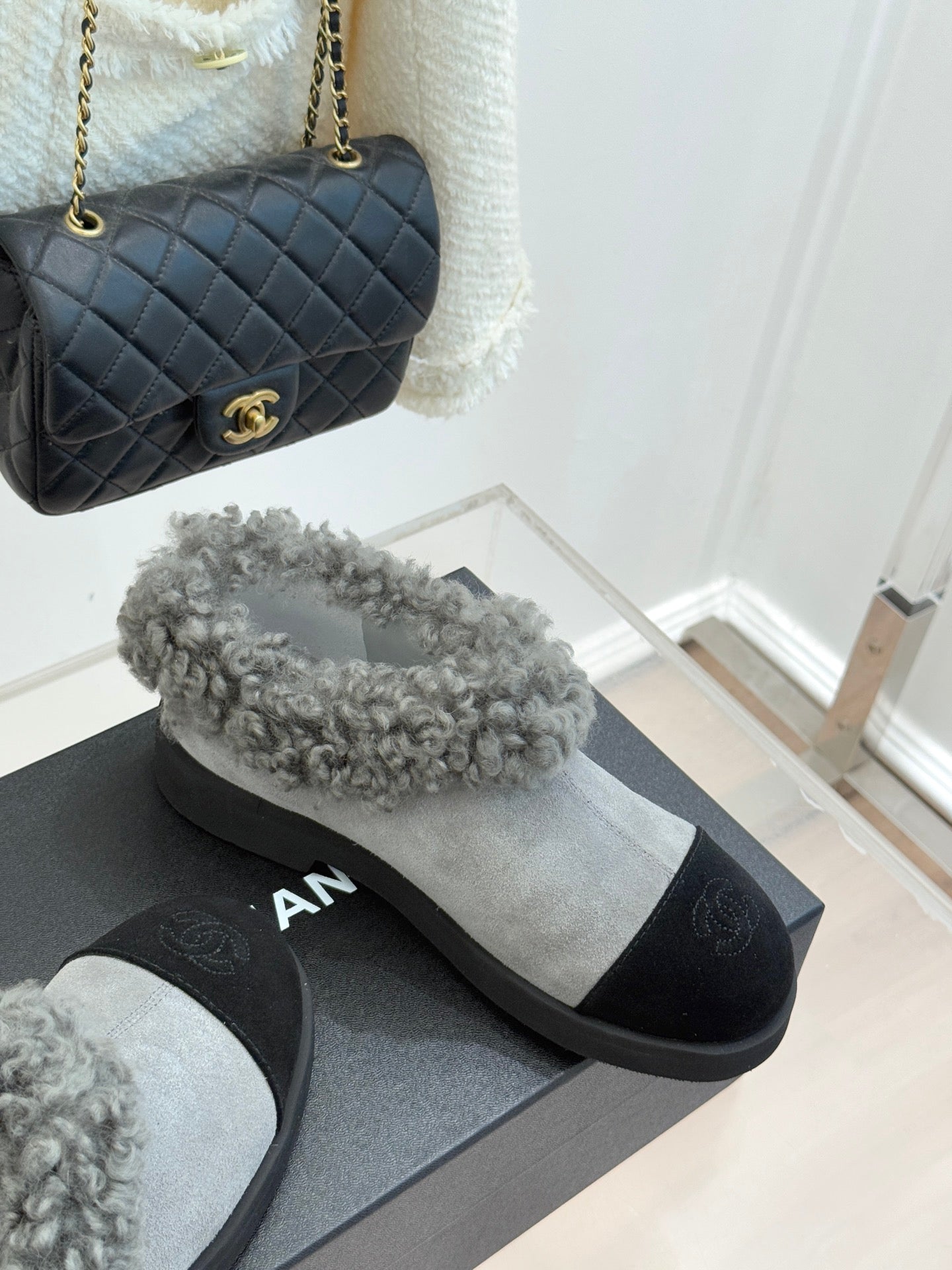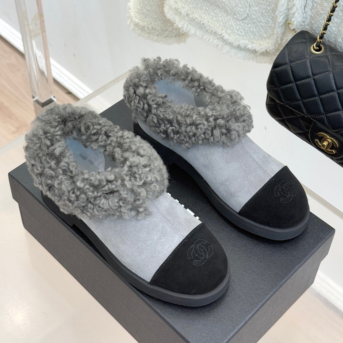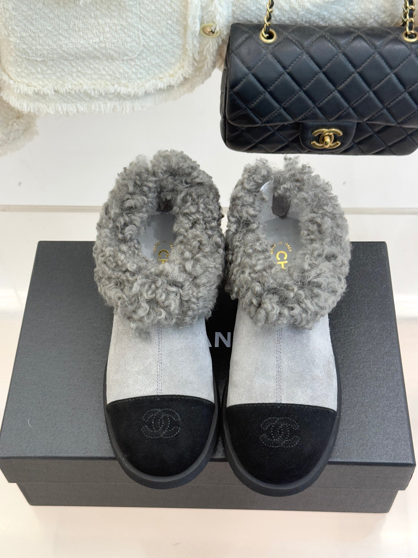 CC 25s Furry Snow Boots Gray Black Suede Wool 512062
