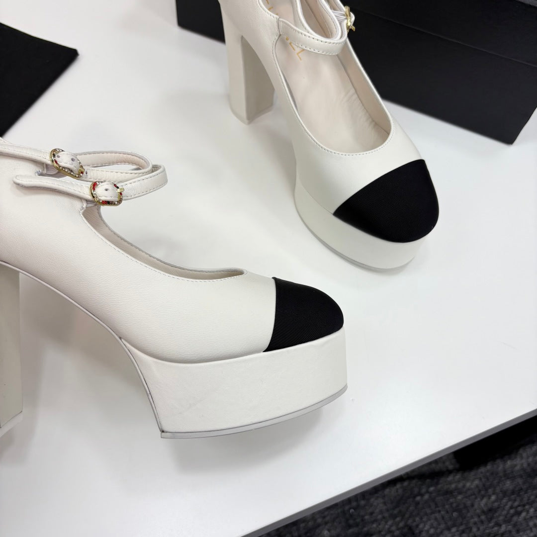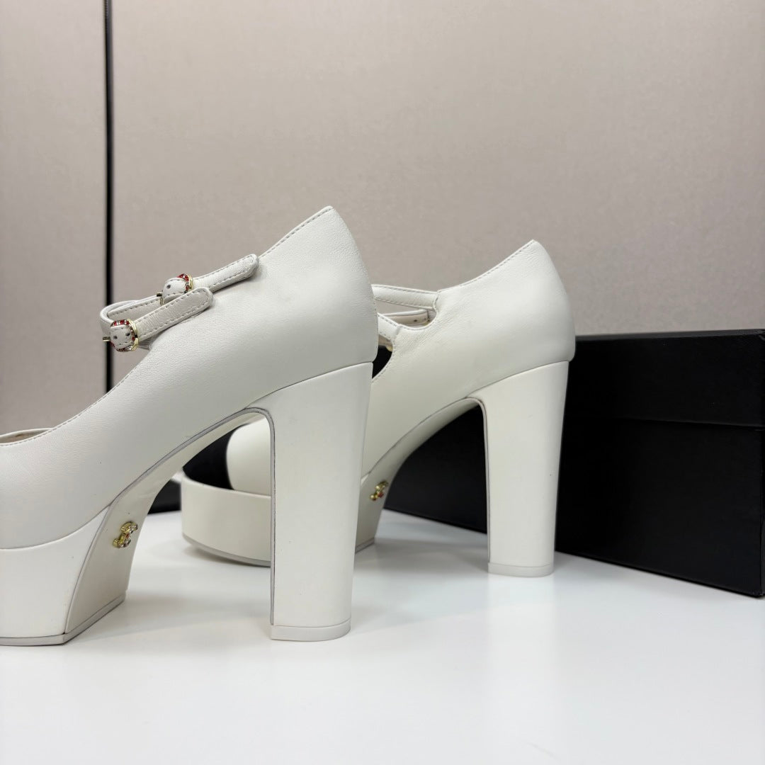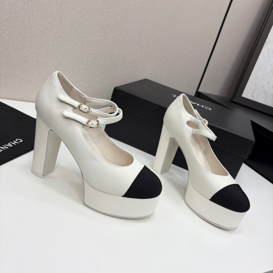 CC 25S Mary Jane Platform 11cm Cream Calfskin Grosgrain