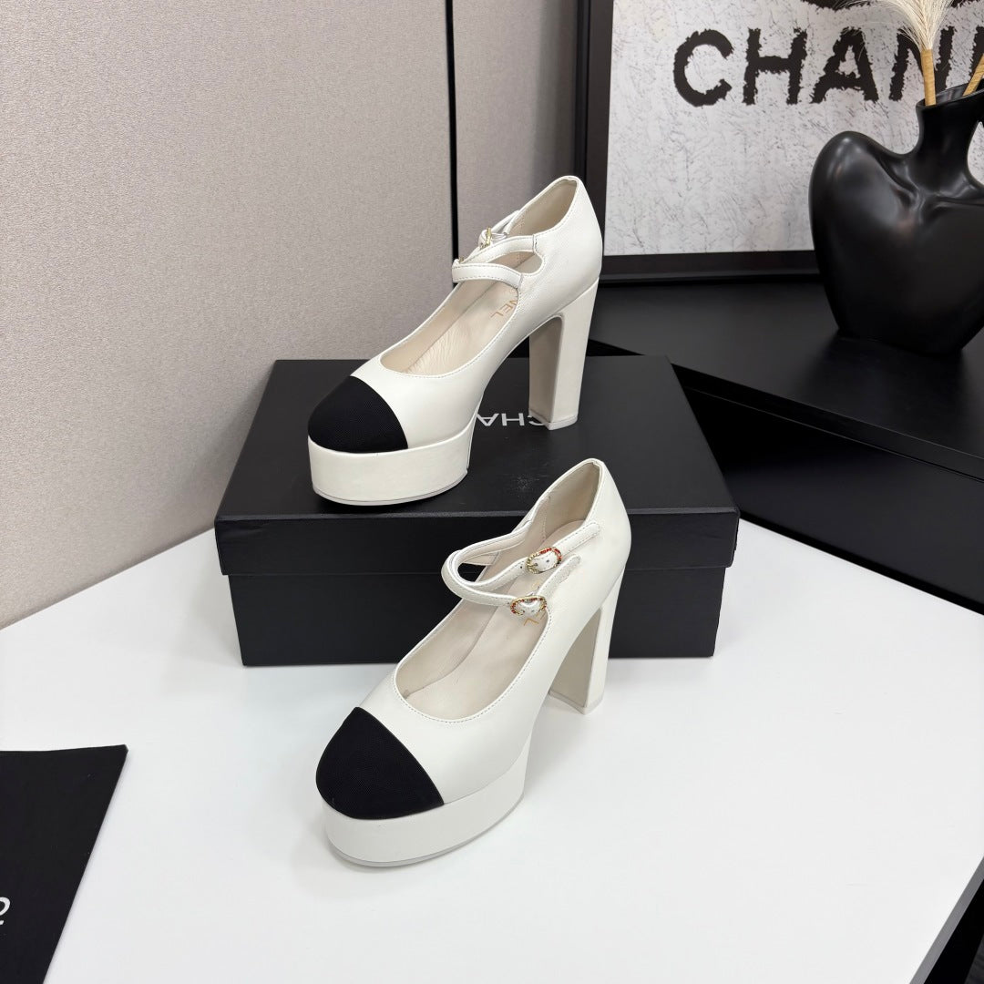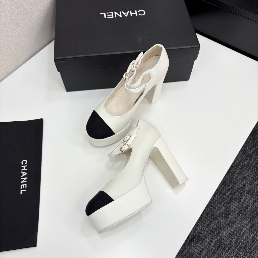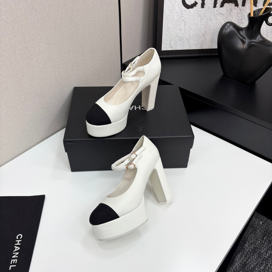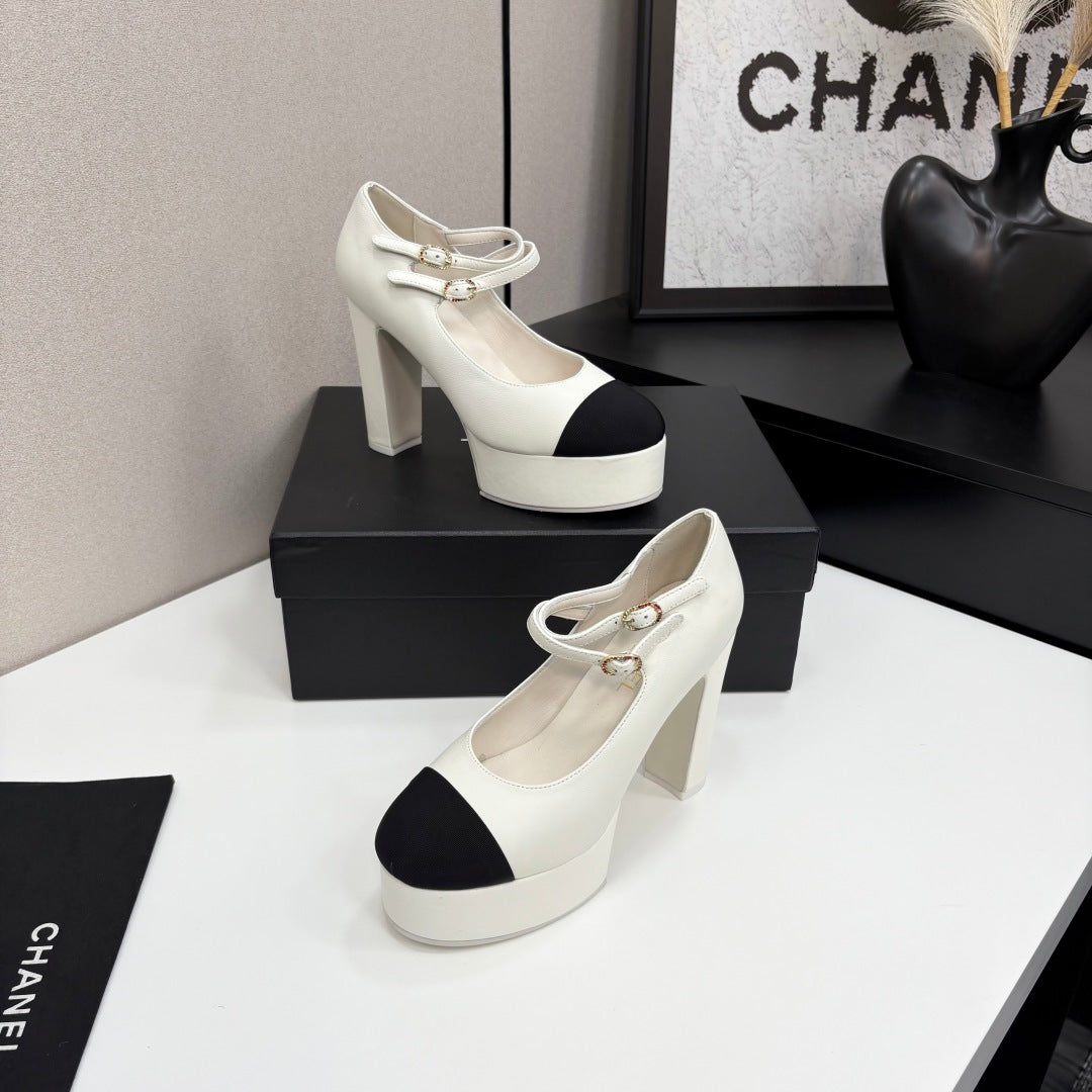 CC 25S Mary Jane Platform 11cm Cream Calfskin Grosgrain
