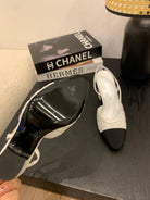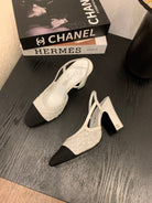 CC 25 Sandal Heel 85mm White Fabric Black Grosgrain