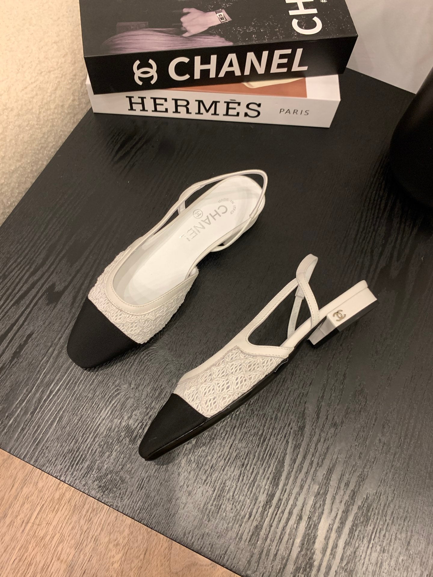 CC 25 Slingback Flat White Fabric Grosgrain